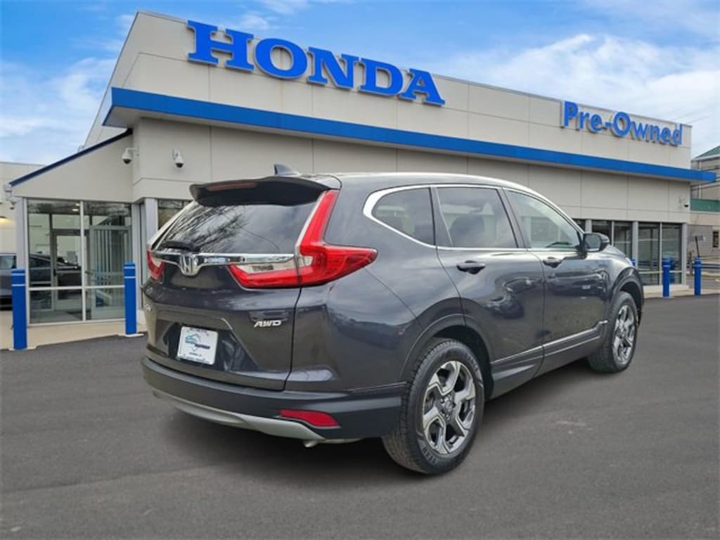 Honda of Mahwah is proud to present you with another True Market Priced Pre-Owned Vehicle. This 2017 Honda CR-V EX-L HondaTrue Used is loaded with the following Factory Options: CR-V EX-L, 4D Sport Utility, 1.5L I4 DOHC 16V, CVT, AWD, Gunmetal Metallic, and Gray w/Leather Seat Trim CR-V EX-L, HondaTrue Used Certified, 4D Sport Utility, 1.5L I4 DOHC 16V, CVT, AWD, Gunmetal Metallic, Gray w/Leather Seat Trim, 18" Alloy Wheels, 4-Wheel Disc Brakes, 5.64 Axle Ratio, 8 Speakers, ABS brakes, Air Conditioning, Alloy wheels, AM/FM radio: SiriusXM, Apple CarPlay/Android Auto, Auto High-beam Headlights, Auto-dimming Rear-View mirror, Automatic temperature control, Blind Spot Information (BSI) System warning, Brake assist, Bumpers: body-color, Compass, Delay-off headlights, Driver door bin, Driver vanity mirror, Dual front impact airbags, Dual front side impact airbags, Electronic Stability Control, Exterior Parking Camera Rear, Four wheel independent suspension, Front anti-roll bar, Front Bucket Seats, Front Center Armrest, Front dual zone A/C, Front fog lights, Front reading lights, Fully automatic headlights, Garage door transmitter: HomeLink, Heated door mirrors, Heated Front Bucket Seats, Heated front seats, Illuminated entry, Leather Seat Trim, Leather Shift Knob, Low tire pressure warning, Memory seat, Occupant sensing airbag, Outside temperature display, Overhead airbag, Overhead console, Panic alarm, Passenger door bin, Passenger vanity mirror, Power door mirrors, Power driver seat, Power Liftgate, Power moonroof, Power passenger seat, Power steering, Power windows, Radio data system, Radio: AM/FM/HD/SiriusXM Audio System, Rear anti-roll bar, Rear seat center armrest, Rear window defroster, Rear window wiper, Remote keyless entry, Security system, Speed control, Speed-sensing steer