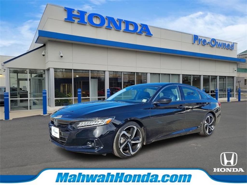 Honda of Mahwah is proud to present you with another True Market Priced Pre-Owned Vehicle. This 2022 Honda Accord Sport Special Edition HondaTrue Certified is loaded with the following Factory Options: Accord Sport Special Edition, 4D Sedan, 1.5T I4 DOHC 16V Turbocharged VTEC, CVT, FWD, Black, and Black Leather Accord Sport Special Edition, HondaTrue Certified Certified, 4D Sedan, 1.5T I4 DOHC 16V Turbocharged VTEC, CVT, FWD, Black, Black Leather, 4-Wheel Disc Brakes, 8 Speakers, ABS brakes, Adaptive Cruise Control: Adaptive Cruise Control (ACC) with Low-Speed Follow, Air Conditioning, Alloy wheels, AM/FM radio, Apple CarPlay/Android Auto, Auto High-beam Headlights, Automatic temperature control, Brake assist, Bumpers: body-color, Delay-off headlights, Driver door bin, Driver vanity mirror, Dual front impact airbags, Dual front side impact airbags, Electronic Stability Control, Emergency communication system: HondaLink, Exterior Parking Camera Rear, Forward collision: Collision Mitigation Braking System (CMBS) + FCW mitigation, Four wheel independent suspension, Front anti-roll bar, Front Bucket Seats, Front Center Armrest, Front dual zone A/C, Front fog lights, Front reading lights, Fully automatic headlights, Heated door mirrors, Heated Front Bucket Seats, Heated front seats, Illuminated entry, Knee airbag, Lane Departure Warning System, Leather Shift Knob, Leather steering wheel, Low tire pressure warning, Occupant sensing airbag, Outside temperature display, Overhead airbag, Overhead console, Panic alarm, Passenger door bin, Passenger vanity mirror, Perforated Leather Seat Trim, Power door mirrors, Power driver seat, Power passenger seat, Power steering, Power windows, Radio data system, Radio: 180-Watt AM/FM Audio System, Rear anti-roll bar, Rear seat center armrest, Rear window defroster, Remote keyless entry, Security system, Speed control, Speed-sensing steering, Speed-Sensitive Wipers, Split folding rear seat, Spoiler, Steering wheel mounted audio controls, Tachometer, Telescoping steering wheel, Tilt steering wheel, Traction control, Trip computer, Variably intermittent wipers, an