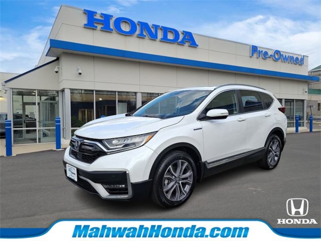 Honda of Mahwah is proud to present you with another True Market Priced Pre-Owned Vehicle. This 2022 Honda CR-V Hybrid Touring HondaTrue Certified is loaded with the following Factory Options: CR-V Hybrid Touring, 4D Sport Utility, 2.0L I4 DOHC 16V, eCVT, AWD, Platinum White Pearl, and Black w/Leather Seat Trim CR-V Hybrid Touring, HondaTrue Certified Certified, 4D Sport Utility, 2.0L I4 DOHC 16V, eCVT, AWD, Platinum White Pearl, Black w/Leather Seat Trim, 3.89 Axle Ratio, 4-Wheel Disc Brakes, 9 Speakers, ABS brakes, Adaptive Cruise Control: Adaptive Cruise Control (ACC) with Low-Speed Follow, Air Conditioning, Alloy wheels, AM/FM radio: SiriusXM, Apple CarPlay/Android Auto, Auto High-beam Headlights, Auto-dimming Rear-View mirror, Automatic temperature control, Blind Spot Information (BSI) System warning, Brake assist, Bumpers: body-color, Compass, Delay-off headlights, Driver door bin, Driver vanity mirror, Dual front impact airbags, Dual front side impact airbags, Electronic Stability Control, Exterior Parking Camera Rear, Forward collision: Collision Mitigation Braking System (CMBS) + FCW mitigation, Four wheel independent suspension, Front anti-roll bar, Front Bucket Seats, Front Center Armrest, Front dual zone A/C, Front fog lights, Front reading lights, Garage door transmitter: HomeLink, Heated door mirrors, Heated Front Bucket Seats, Heated front seats, Heated steering wheel, Illuminated entry, Leather Seat Trim, Low tire pressure warning, Memory seat, Navigation system: Honda Satellite-Linked Navigation System, Occupant sensing airbag, Outside temperature display, Overhead airbag, Overhead console, Panic alarm, Passenger door bin, Passenger vanity mirror, Power door mirrors, Power driver seat, Power Liftgate, Power moonroof, Power passenger seat, Power steering, Power windows, Radio data system, Radio: 330-Watt AM/FM/HD/SiriusXM Prem Audio Sys, Rain sensing wipers, Rear anti-roll bar, Rear seat center armrest, Rear window defroster, Rear window wiper, Remote keyless entry, Roof rack: rails only, Security system, Speed control, Speed-sensing steering, Speed-Sensitive Wipers, Split folding rear seat, Spoiler, S