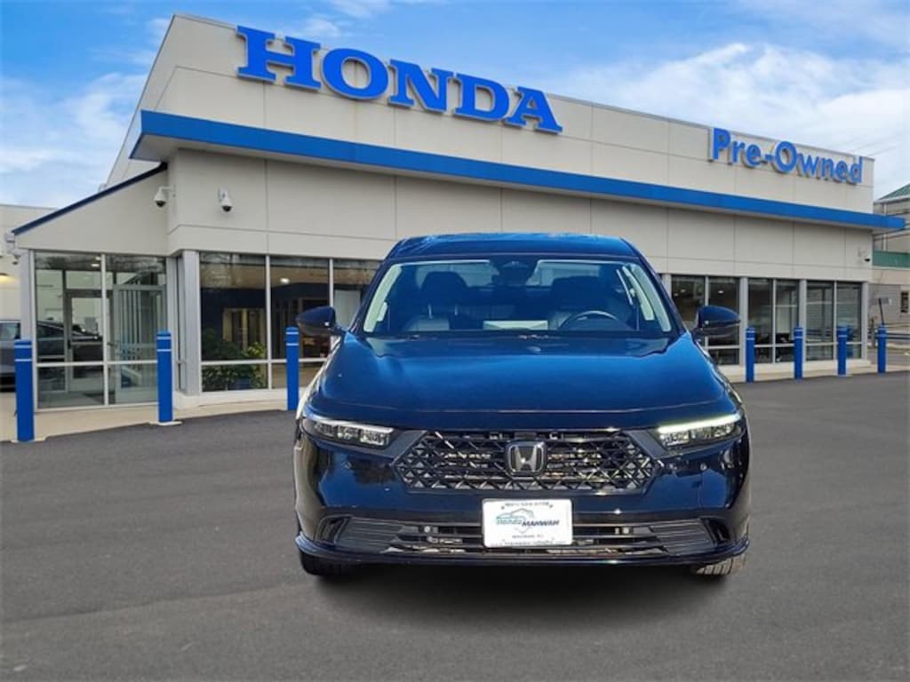 Honda of Mahwah is proud to present you with another True Market Priced Pre-Owned Vehicle. This 2023 Honda Accord Hybrid EX-L HondaTrue Certified is loaded with the following Factory Options: Accord Hybrid EX-L, 4D Sedan, 2.0L 16V DOHC, eCVT, FWD, Crystal Black Pearl, and Black w/Leather-Trimmed Seat Trim Accord Hybrid EX-L, HondaTrue Certified Certified, 4D Sedan, 2.0L 16V DOHC, eCVT, FWD, Crystal Black Pearl, Black w/Leather-Trimmed Seat Trim, 4-Wheel Disc Brakes, 8 Speakers, ABS brakes, Adaptive Cruise Control: Adaptive Cruise Control (ACC) with Low-Speed Follow, Air Conditioning, Alloy wheels, AM/FM radio, Apple CarPlay/Android Auto, Auto High-beam Headlights, Auto-dimming Rear-View mirror, Automatic temperature control, Brake assist, Bumpers: body-color, Compass, Delay-off headlights, Driver door bin, Driver vanity mirror, Dual front impact airbags, Dual front side impact airbags, Electronic Stability Control, Emergency communication system: HondaLink, Exterior Parking Camera Rear, Four wheel independent suspension, Front anti-roll bar, Front Bucket Seats, Front Center Armrest, Front dual zone A/C, Front reading lights, Fully automatic headlights, Heated door mirrors, Heated Front Bucket Seats, Heated front seats, Illuminated entry, Knee airbag, Lane departure: Lane Keeping Assist System (LKAS) active, Leather Shift Knob, Leather steering wheel, Leather-Trimmed Seat Trim, Low tire pressure warning, Memory seat, Occupant sensing airbag, Outside temperature display, Overhead airbag, Overhead console, Panic alarm, Passenger door bin, Passenger vanity mirror, Power door mirrors, Power driver seat, Power moonroof, Power passenger seat, Power steering, Power windows, Radio data system, Radio: 180-Watt Audio System, Rear anti-roll bar, Rear reading lights, Rear seat center armrest, Rear side impact airbag, Rear window defroster, Remote keyless entry, Security system, Speed control, Speed-sensing steering, Speed-Sensitive Wipers, Split folding rear seat, Steering wheel mounted audio controls, Telescoping steering wheel, Tilt steering wheel, Traction control, Trip computer, Turn signal indicator