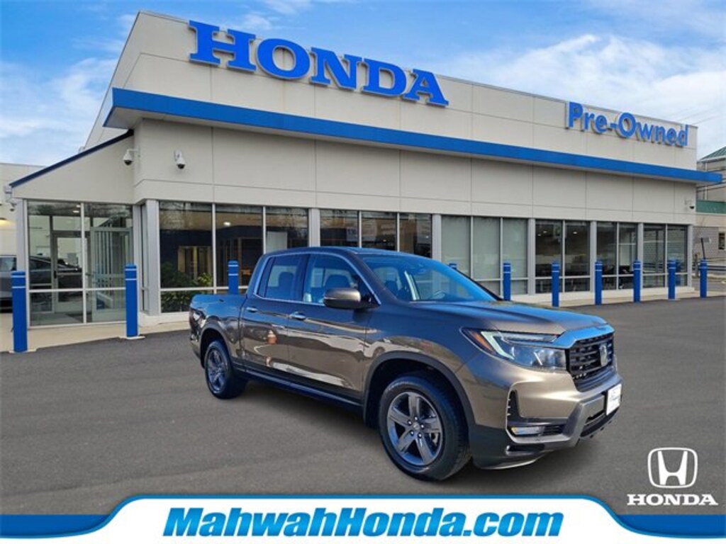 Honda of Mahwah is proud to present you with another True Market Priced Pre-Owned Vehicle. This 2023 Honda Ridgeline RTL-E HondaTrue Certified is loaded with the following Factory Options: Black Leather HondaTrue Certified Certified, Black Leather, 4-Wheel Disc Brakes, 4.33 Axle Ratio, 8 Speakers, ABS brakes, Air Conditioning, Alloy wheels, AM/FM radio: SiriusXM, Apple CarPlay/Android Auto, Auto High-beam Headlights, Auto-dimming Rear-View mirror, Automatic temperature control, Blind Spot Information (BSI) System warning, Bluetooth® Hands-Free Link, Brake assist, Bumpers: body-color, Compass, Delay-off headlights, Driver door bin, Driver vanity mirror, Driver's Seat Mounted Armrest, Dual front impact airbags, Dual front side impact airbags, Electronic Stability Control, Exterior Parking Camera Rear, Four wheel independent suspension, Front anti-roll bar, Front Bucket Seats, Front dual zone A/C, Front fog lights, Front reading lights, Fully automatic headlights, Garage door transmitter: HomeLink, Heated door mirrors, Heated Front Bucket Seats, Heated front seats, Heated steering wheel, Honda Satellite-Linked Navigation System, Illuminated entry, Leather Seat Trim, Low tire pressure warning, Memory seat, Navigation system: Honda Satellite-Linked Navigation System, Occupant sensing airbag, Outside temperature display, Overhead airbag, Overhead console, Panic alarm, Passenger door bin, Passenger seat mounted armrest, Passenger vanity mirror, Power door mirrors, Power driver seat, Power moonroof, Power passenger seat, Power steering, Power windows, Radio data system, Radio: 540-Watt Premium Audio System w/8 Speakers, Rear air conditioning, Rear anti-roll bar, Rear reading lights, Rear seat center armrest, Rear step bumper, Rear window defroster, Remote keyless entry, Security system, SiriusXM, Speed control, Speed-sensing steering, Split folding rear seat, Steering wheel mounted audio controls, Tachometer, Telescoping steering wheel, Tilt steering wheel, Traction control, Trip computer, Turn signal indicator mirrors, Variably intermittent wipers, and Wheels: 18" Exclusive Pewter Gray Alloy!!
