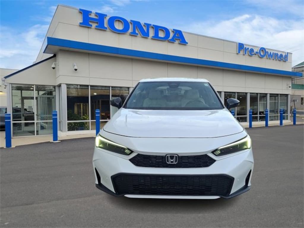 Honda of Mahwah is proud to present you with another True Market Priced Pre-Owned Vehicle. This 2025 Honda Civic Hybrid Sport Touring HondaTrue Certified is loaded with the following Factory Options: 2.0L I4 DOHC 16V HondaTrue Certified Certified, 2.0L I4 DOHC 16V, 12 Speakers, 4-Wheel Disc Brakes, ABS brakes, Adaptive Cruise Control: Adaptive Cruise Control (ACC) with Low-Speed Follow, Air Conditioning, Alloy wheels, AM/FM radio, Apple CarPlay/Android Auto, Auto High-beam Headlights, Auto-dimming Rear-View mirror, Automatic temperature control, Blind Spot Information (BSI) System warning, Bose Premium Sound System, Brake assist, Bumpers: body-color, Compass, Delay-off headlights, Driver door bin, Driver vanity mirror, Dual front impact airbags, Dual front side impact airbags, Electronic Stability Control, Emergency communication system: HondaLink, Exterior Parking Camera Rear, Four wheel independent suspension, Front anti-roll bar, Front Bucket Seats, Front Center Armrest, Front dual zone A/C, Front reading lights, Fully automatic headlights, Heated door mirrors, Heated Front Bucket Seats, Heated front seats, Illuminated entry, Knee airbag, Lane departure: Lane Keeping Assist System (LKAS) active, Leather Shift Knob, Leather steering wheel, Leather-Trimmed Seat Trim, Low tire pressure warning, Navigation system: Google Maps, Occupant sensing airbag, Outside temperature display, Overhead airbag, Overhead console, Panic alarm, Passenger door bin, Passenger vanity mirror, Power door mirrors, Power driver seat, Power moonroof, Power passenger seat, Power steering, Power windows, Radio data system, Rain sensing wipers, Rear anti-roll bar, Rear seat center armrest, Rear side impact airbag, Rear window defroster, Rear window wiper, Remote keyless entry, Security system, Speed control, Speed-sensing steering, Split folding rear seat, Steering wheel mounted audio controls, Tachometer, Telescoping steering wheel, Tilt steering wheel, Traction control, Trip computer, Turn signal indicator mirrors, Variably intermittent wipers, and Wheels: 18" Alloy w/Matte Shark Gray Inserts!!