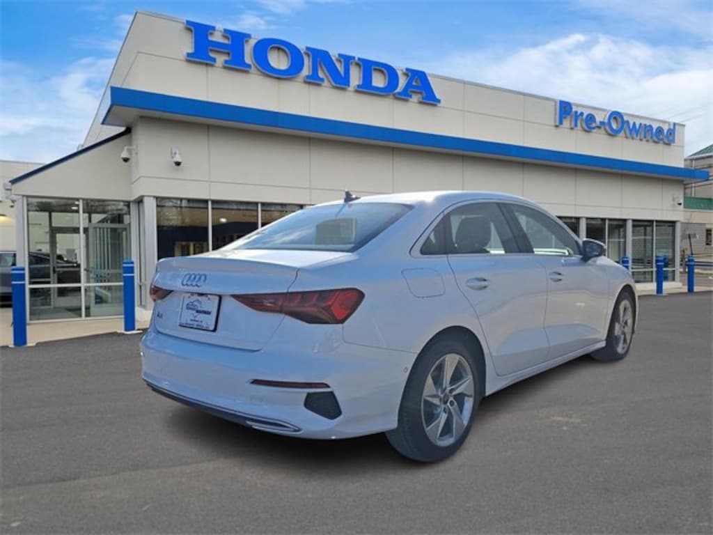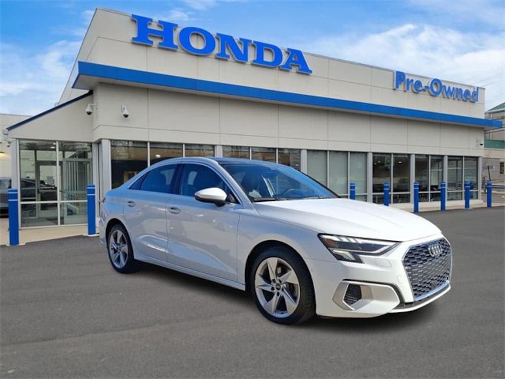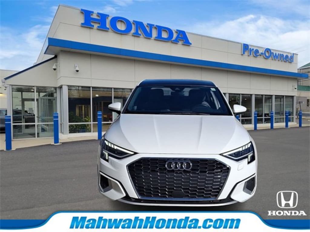Honda of Mahwah is proud to present you with another True Market Priced Pre-Owned Vehicle. This 2023 Audi A3 40 Premium FrontTrak is loaded with the following Factory Options: A3 40 Premium FrontTrak, 4D Sedan, 2.0L 4-Cylinder TFSI, 7-Speed Automatic S tronic, FrontTrak, Glacier White Metallic, Black/Rock Gray Stitching w/Leather Seating Surfaces, ABS brakes, Alloy wheels, Electronic Stability Control, Emergency communication system, Front dual zone A/C, Heated door mirrors, Heated Front Bucket Seats, Heated front seats, Illuminated entry, Low tire pressure warning, Power moonroof, Remote keyless entry, and Traction control A3 40 Premium FrontTrak, 4D Sedan, 2.0L 4-Cylinder TFSI, 7-Speed Automatic S tronic, FrontTrak, Glacier White Metallic, Black/Rock Gray Stitching w/Leather Seating Surfaces, ABS brakes, Alloy wheels, Electronic Stability Control, Emergency communication system, Front dual zone A/C, Heated door mirrors, Heated Front Bucket Seats, Heated front seats, Illuminated entry, Low tire pressure warning, Power moonroof, Remote keyless entry, Traction control, 4-Wheel Disc Brakes, 6 Speakers, Air Conditioning, AM/FM radio, Auto High-beam Headlights, Automatic temperature control, Brake assist, Bumpers: body-color, Delay-off headlights, Driver door bin, Driver vanity mirror, Dual front impact airbags, Dual front side impact airbags, Exterior Parking Camera Rear, Four wheel independent suspension, Front anti-roll bar, Front Bucket Seats, Front Center Armrest, Front reading lights, Fully automatic headlights, Knee airbag, Leather Seating Surfaces, Leather steering wheel, Occupant sensing airbag, Outside temperature display, Overhead airbag, Overhead console, Panic alarm, Passenger door bin, Passenger vanity mirror, Power door mirrors, Power driver seat, Power passenger seat, Power steering, Power windows, Radio data system, Radio: Audi Sound System, Rain sensing wipers, Rear air conditioning, Rear anti-roll bar, Rear fog lights, Rear reading lights, Rear seat center armrest, Rear side impact airbag, Rear window defroster, Speed control, Speed-sensing steering, Speed-Sensitive Wipers, Split folding rear seat, Steering wheel mounted audio controls, Tachometer, Telescoping steering wheel, Tilt steering wheel, Trip computer, Turn signal indicator mirrors, Variably intermittent wipers, and Wheels: 17" 5-Arm Design!!