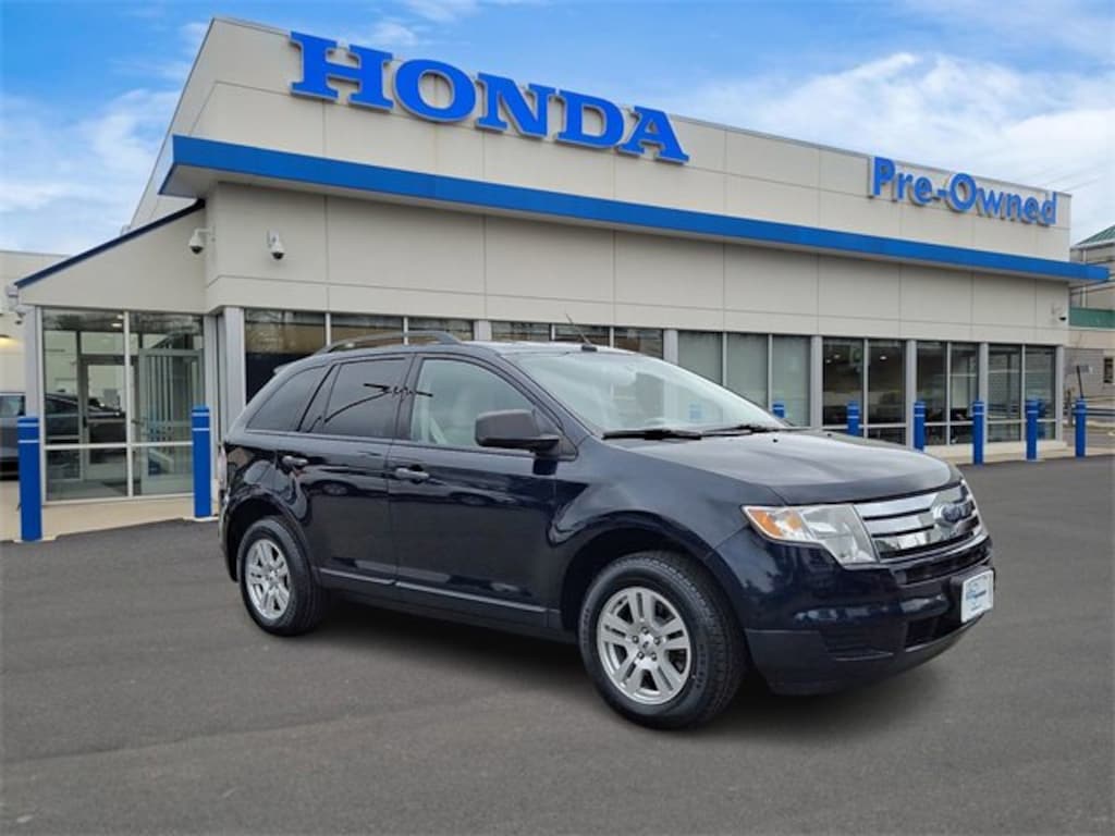Honda of Mahwah is proud to present you with another True Market Priced Pre-Owned Vehicle. This 2009 Ford Edge SE is loaded with the following Factory Options: Edge SE, 4D Sport Utility, Duratec 3.5L V6, 6-Speed Automatic, FWD, Blue, and Camel w/Unique Cloth Bucket Seats GVWR: 5,300 lb Payload Package, Edge SE, 4D Sport Utility, Duratec 3.5L V6, 6-Speed Automatic, FWD, Blue, Camel w/Unique Cloth Bucket Seats, 17" Painted Aluminum Wheels, 3.16 Axle Ratio, 4 Speakers, 4-Wheel Disc Brakes, ABS brakes, Air Conditioning, Alloy wheels, AM/FM radio, AM/FM Stereo/Clock/Single CD/MP3/4 Speakers, Bumpers: body-color, CD player, Cloth Trimmed Bucket Seats, Driver door bin, Driver vanity mirror, Dual front impact airbags, Dual front side impact airbags, Electronic Stability Control, Four wheel independent suspension, Front anti-roll bar, Front Bucket Seats, Front Center Armrest, Front reading lights, Illuminated entry, Low tire pressure warning, Occupant sensing airbag, Overhead airbag, Overhead console, Panic alarm, Passenger door bin, Passenger vanity mirror, Power door mirrors, Power steering, Power windows, Radio data system, Rear anti-roll bar, Rear reading lights, Rear seat center armrest, Rear window defroster, Rear window wiper, Remote keyless entry, Speed control, Speed-sensing steering, Speed-Sensitive Wipers, Split folding rear seat, Spoiler, Tachometer, Telescoping steering wheel, Tilt steering wheel, Traction control, and Variably intermittent wipers!!