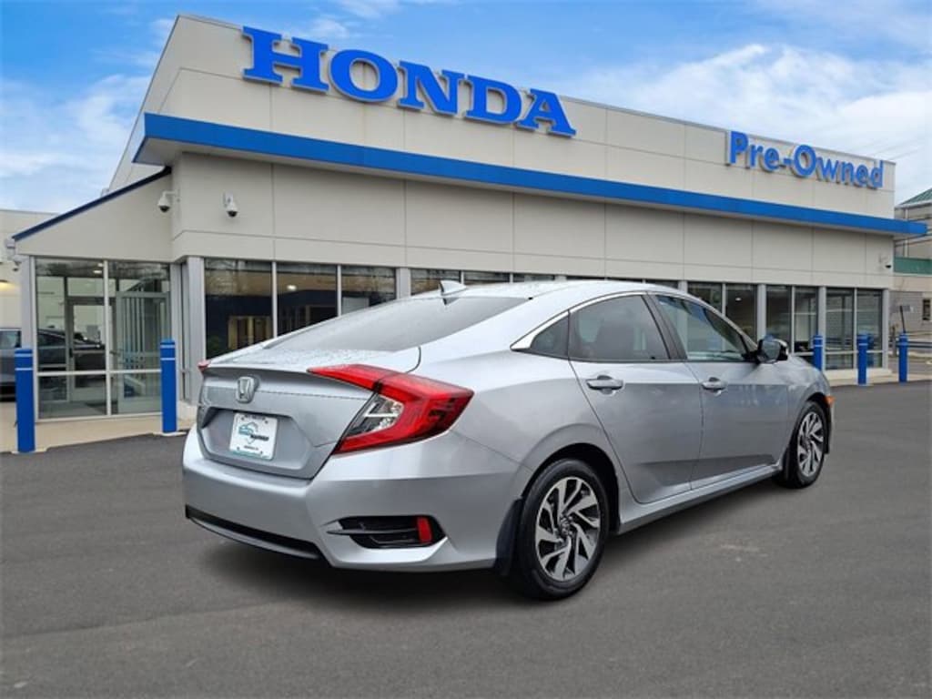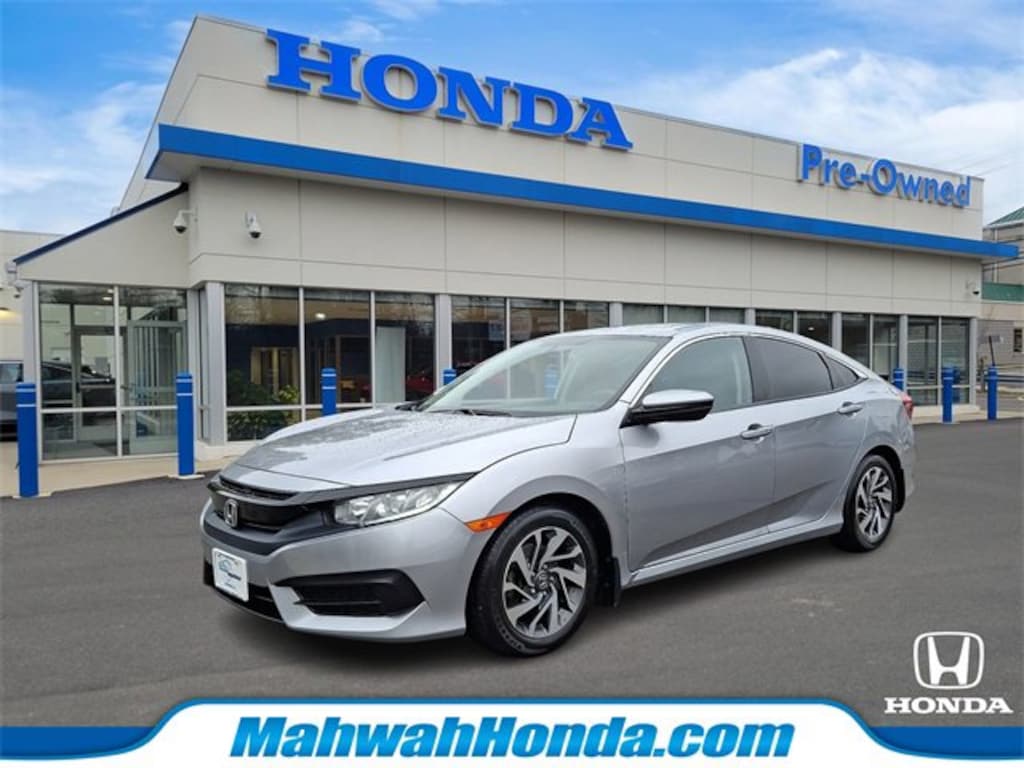 Honda of Mahwah is proud to present you with another True Market Priced Pre-Owned Vehicle. This 2018 Honda Civic EX is loaded with the following Factory Options: Black Cloth Black Cloth, 16" Alloy Wheels, 4-Wheel Disc Brakes, 8 Speakers, ABS brakes, Air Conditioning, Alloy wheels, AM/FM radio, Apple CarPlay/Android Auto, Automatic temperature control, Brake assist, Bumpers: body-color, Cloth Seat Trim, Compass, Delay-off headlights, Driver door bin, Driver vanity mirror, Dual front impact airbags, Dual front side impact airbags, Electronic Stability Control, Emergency communication system: HondaLink, Exterior Parking Camera Rear, Four wheel independent suspension, Front anti-roll bar, Front Bucket Seats, Front Center Armrest, Front reading lights, Fully automatic headlights, Heated door mirrors, Illuminated entry, Low tire pressure warning, Occupant sensing airbag, Outside temperature display, Overhead airbag, Panic alarm, Passenger door bin, Passenger vanity mirror, Power door mirrors, Power moonroof, Power steering, Power windows, Radio data system, Radio: 180-Watt AM/FM/HD/SiriusXM Audio System, Rear anti-roll bar, Rear seat center armrest, Rear window defroster, Reclining Front Bucket Seats, Remote keyless entry, Security system, Speed control, Speed-sensing steering, Speed-Sensitive Wipers, Split folding rear seat, Steering wheel mounted audio controls, Tachometer, Telescoping steering wheel, Tilt steering wheel, Traction control, Trip computer, and Variably intermittent wipers!!