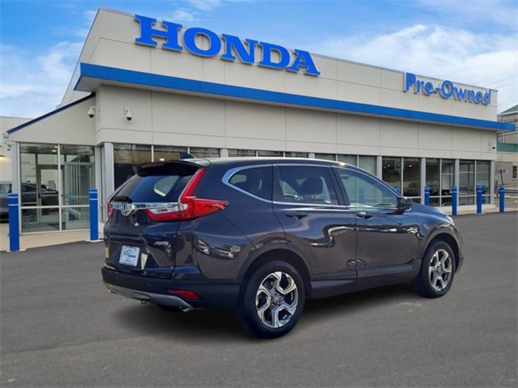 Honda of Mahwah is proud to present you with another True Market Priced Pre-Owned Vehicle. This 2019 Honda CR-V EX-L is loaded with the following Factory Options: CR-V EX-L, 4D Sport Utility, 1.5L I4 DOHC 16V, AWD, Gunmetal Metallic, and Gray w/Leather Seat Trim CR-V EX-L, 4D Sport Utility, 1.5L I4 DOHC 16V, AWD, Gunmetal Metallic, Gray w/Leather Seat Trim, 18" Alloy Wheels, 4-Wheel Disc Brakes, 5.64 Axle Ratio, 8 Speakers, ABS brakes, Air Conditioning, Alloy wheels, AM/FM radio: SiriusXM, Apple CarPlay/Android Auto, Auto High-beam Headlights, Auto-dimming Rear-View mirror, Automatic temperature control, Blind Spot Information (BSI) System warning, Brake assist, Bumpers: body-color, Compass, Delay-off headlights, Driver door bin, Driver vanity mirror, Dual front impact airbags, Dual front side impact airbags, Electronic Stability Control, Exterior Parking Camera Rear, Forward collision: Collision Mitigation Braking System (CMBS) + FCW mitigation, Four wheel independent suspension, Front anti-roll bar, Front Bucket Seats, Front Center Armrest, Front dual zone A/C, Front fog lights, Front reading lights, Fully automatic headlights, Garage door transmitter: HomeLink, Heated door mirrors, Heated Front Bucket Seats, Heated front seats, Illuminated entry, Lane departure: Lane Keeping Assist System (LKAS) active, Leather Seat Trim, Leather Shift Knob, Low tire pressure warning, Memory seat, Occupant sensing airbag, Outside temperature display, Overhead airbag, Overhead console, Panic alarm, Passenger door bin, Passenger vanity mirror, Power door mirrors, Power driver seat, Power Liftgate, Power moonroof, Power passenger seat, Power steering, Power windows, Radio data system, Radio: AM/FM/SiriusXM Audio System, Rear anti-roll bar, Rear seat center armrest, Rear window defroster, Rear window wiper, Remote keyless entry, Security system, Speed control, Speed-sensing steering, Speed-Sensitive Wipers, Split folding rear seat, Spoiler, Steering wheel mounted audio controls, Tachometer, Telescoping steering wheel, Tilt steering wheel, Traction control, Trip computer, Turn signal indicator mirrors, and Variably intermittent wipers!!