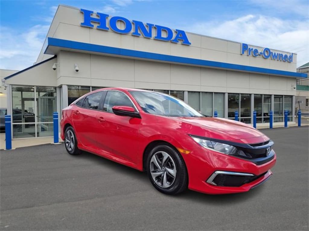 Honda of Mahwah is proud to present you with another True Market Priced Pre-Owned Vehicle. This 2020 Honda Civic LX is loaded with the following Factory Options: Black Cloth Black Cloth, 16" Wheels w/Full Covers, 4 Speakers, 4-Wheel Disc Brakes, ABS brakes, Adaptive Cruise Control: Adaptive Cruise Control (ACC) with Low-Speed Follow, Air Conditioning, AM/FM radio, Auto High-beam Headlights, Automatic temperature control, Brake assist, Bumpers: body-color, Cloth Seat Trim, Delay-off headlights, Driver door bin, Driver vanity mirror, Dual front impact airbags, Dual front side impact airbags, Electronic Stability Control, Exterior Parking Camera Rear, Forward collision: Collision Mitigation Braking System (CMBS) + FCW mitigation, Four wheel independent suspension, Front anti-roll bar, Front Bucket Seats, Front Center Armrest, Front reading lights, Fully automatic headlights, Illuminated entry, Lane departure: Lane Keeping Assist System (LKAS) active, Low tire pressure warning, Occupant sensing airbag, Outside temperature display, Overhead airbag, Panic alarm, Passenger door bin, Passenger vanity mirror, Power door mirrors, Power steering, Power windows, Radio data system, Radio: 160-Watt AM/FM Audio System, Rear anti-roll bar, Rear window defroster, Remote keyless entry, Security system, Speed control, Speed-sensing steering, Steering wheel mounted audio controls, Tachometer, Telescoping steering wheel, Tilt steering wheel, Traction control, and Trip computer!!