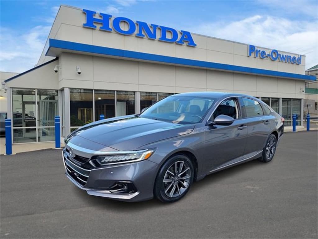 Honda of Mahwah is proud to present you with another True Market Priced Pre-Owned Vehicle. This 2021 Honda Accord EX-L is loaded with the following Factory Options: Black Leather Black Leather, 10 Speakers, 17" Machine-Finished Alloy Wheels, 4-Wheel Disc Brakes, ABS brakes, Adaptive Cruise Control: Adaptive Cruise Control (ACC) with Low-Speed Follow, Air Conditioning, Alloy wheels, AM/FM radio: SiriusXM, Apple CarPlay/Android Auto, Auto High-beam Headlights, Auto-dimming Rear-View mirror, Automatic temperature control, Blind Spot Information (BSI) System warning, Brake assist, Bumpers: body-color, Delay-off headlights, Driver door bin, Driver vanity mirror, Dual front impact airbags, Dual front side impact airbags, Electronic Stability Control, Emergency communication system: HondaLink, Exterior Parking Camera Rear, Forward collision: Collision Mitigation Braking System (CMBS) + FCW mitigation, Four wheel independent suspension, Front anti-roll bar, Front Bucket Seats, Front Center Armrest, Front dual zone A/C, Front fog lights, Front reading lights, Fully automatic headlights, Garage door transmitter: HomeLink, Heated door mirrors, Heated Front Bucket Seats, Heated front seats, Illuminated entry, Knee airbag, Lane Departure Warning System, Leather Shift Knob, Leather steering wheel, Leather-Trimmed Seats, Low tire pressure warning, Memory seat, Occupant sensing airbag, Outside temperature display, Overhead airbag, Overhead console, Panic alarm, Passenger door bin, Passenger vanity mirror, Power door mirrors, Power driver seat, Power moonroof, Power passenger seat, Power steering, Power windows, Radio data system, Radio: 450-Watt AM/FM/HD Premium Audio System, Rear anti-roll bar, Rear seat center armrest, Rear window defroster, Remote keyless entry, Security system, Speed control, Speed-sensing steering, Speed-Sensitive Wipers, Split folding rear seat, Steering wheel mounted audio controls, Tachometer, Telescoping steering wheel, Tilt steering wheel, Traction control, Trip computer, Turn signal indicator mirrors, and Variably intermittent wipers!!