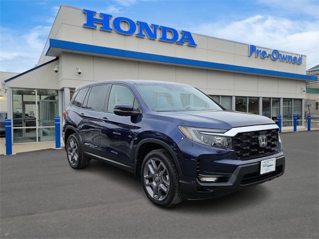 Honda of Mahwah is proud to present you with another True Market Priced Pre-Owned Vehicle. This 2022 Honda Passport EX-L is loaded with the following Factory Options: Passport EX-L, 4D Sport Utility, 3.5L V6 24V SOHC i-VTEC, 9-Speed Automatic, AWD, Obsidian Blue Pearl, and Gray w/Leather-Trimmed Seats Passport EX-L, 4D Sport Utility, 3.5L V6 24V SOHC i-VTEC, 9-Speed Automatic, AWD, Obsidian Blue Pearl, Gray w/Leather-Trimmed Seats, 4-Wheel Disc Brakes, 4.334 Axle Ratio, 7 Speakers, A/V remote: CabinControl, ABS brakes, Air Conditioning, Alloy wheels, AM/FM radio: SiriusXM, Apple CarPlay/Android Auto, Auto High-beam Headlights, Auto-dimming Rear-View mirror, Automatic temperature control, Blind Spot Information (BSI) System warning, Brake assist, Bumpers: body-color, Delay-off headlights, Driver door bin, Driver vanity mirror, Driver's Seat Mounted Armrest, Dual front impact airbags, Dual front side impact airbags, Electronic Stability Control, Emergency communication system: HondaLink Assist, Exterior Parking Camera Rear, Forward collision: Collision Mitigation Braking System (CMBS) + FCW mitigation, Four wheel independent suspension, Front anti-roll bar, Front Bucket Seats, Front Center Armrest, Front dual zone A/C, Front reading lights, Fully automatic headlights, Garage door transmitter: HomeLink, Heated door mirrors, Heated Front Bucket Seats, Heated front seats, Illuminated entry, Lane departure: Lane Keeping Assist System (LKAS) active, Leather-Trimmed Seats, Low tire pressure warning, Memory seat, Occupant sensing airbag, Outside temperature display, Overhead airbag, Overhead console, Panic alarm, Passenger door bin, Passenger seat mounted armrest, Passenger vanity mirror, Power door mirrors, Power driver seat, Power Liftgate, Power moonroof, Power passenger seat, Power steering, Power windows, Radio data system, Radio: 215-Watt Audio System w/7 Speakers, Rear air conditioning, Rear anti-roll bar, Rear reading lights, Rear seat center armrest, Rear window defroster, Rear window wiper, Remote keyless entry, Security system, Speed control, Speed-sensing steering, Split folding rear seat, Spoiler, Steering wheel mounted audio controls, Tachometer, Telescoping steering wheel, Tilt steering wheel, Traction control, Trip computer, Turn signal indicator mirrors, Variably intermittent wipers, and Wheels: 20" Pewter Gray Alloy!!