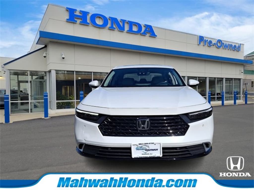 Honda of Mahwah is proud to present you with another True Market Priced Pre-Owned Vehicle. This 2023 Honda Accord Hybrid Touring is loaded with the following Factory Options: Accord Hybrid Touring, 4D Sedan, 2.0L 16V DOHC, eCVT, FWD, Platinum White Pearl, and Gray w/Leather-Trimmed Seat Trim Accord Hybrid Touring, 4D Sedan, 2.0L 16V DOHC, eCVT, FWD, Platinum White Pearl, Gray w/Leather-Trimmed Seat Trim, 12 Speakers, 4-Wheel Disc Brakes, ABS brakes, Adaptive Cruise Control: Adaptive Cruise Control (ACC) with Low-Speed Follow, Adaptive suspension, Air Conditioning, Alloy wheels, AM/FM radio, Apple CarPlay/Android Auto, Auto High-beam Headlights, Auto-dimming Rear-View mirror, Automatic temperature control, Bose Premium Sound System, Brake assist, Bumpers: body-color, Compass, Delay-off headlights, Driver door bin, Driver vanity mirror, Dual front impact airbags, Dual front side impact airbags, Electronic Stability Control, Emergency communication system: HondaLink, Exterior Parking Camera Rear, Four wheel independent suspension, Front anti-roll bar, Front Bucket Seats, Front Center Armrest, Front dual zone A/C, Front reading lights, Fully automatic headlights, Heads-Up Display, Heated & Ventilated Front Bucket Seats, Heated door mirrors, Heated front seats, Heated rear seats, Illuminated entry, Knee airbag, Lane departure: Lane Keeping Assist System (LKAS) active, Leather Shift Knob, Leather steering wheel, Leather-Trimmed Seat Trim, Low tire pressure warning, Memory seat, Navigation system: Google Built-In, Occupant sensing airbag, Outside temperature display, Overhead airbag, Overhead console, Panic alarm, Passenger door bin, Passenger vanity mirror, Power door mirrors, Power driver seat, Power moonroof, Power passenger seat, Power steering, Power windows, Radio data system, Rain sensing wipers, Rear anti-roll bar, Rear reading lights, Rear seat center armrest, Rear side impact airbag, Rear window defroster, Remote keyless entry, Security system, Speed control, Speed-sensing steering, Speed-Sensitive Wipers, Split folding rear seat, Steering wheel mounted audio controls, Telescoping steering wheel, Tilt steering wheel, Traction control, Trip computer, Turn signal indicator mirrors, Variably intermittent wipers, Ventilated front seats, and Wheels: 19" x 8.5J Berlina Black!!