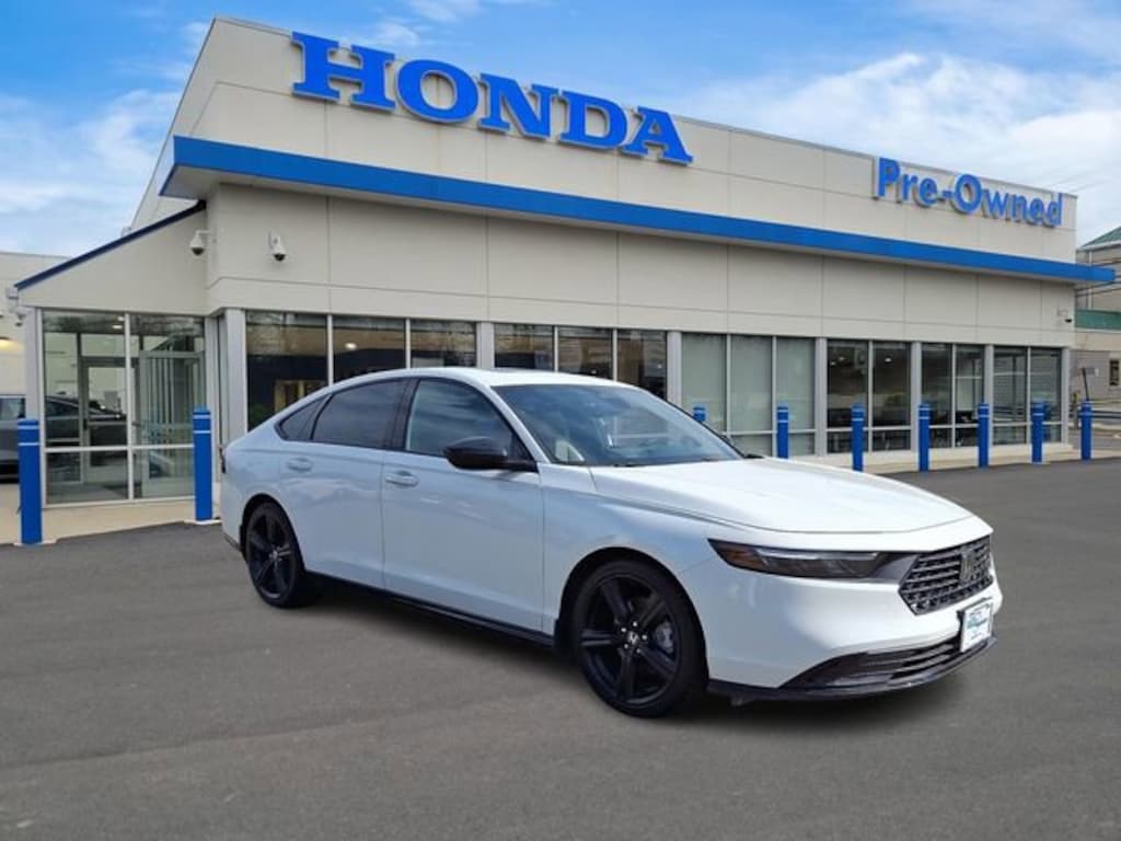 Honda of Mahwah is proud to present you with another True Market Priced Pre-Owned Vehicle. This 2023 Honda Accord Hybrid Sport-L is loaded with the following Factory Options: 2.0L 16V DOHC 2.0L 16V DOHC, 4-Wheel Disc Brakes, 8 Speakers, ABS brakes, Adaptive Cruise Control: Adaptive Cruise Control (ACC) with Low-Speed Follow, Air Conditioning, Alloy wheels, AM/FM radio, Apple CarPlay/Android Auto, Auto High-beam Headlights, Automatic temperature control, Brake assist, Bumpers: body-color, Compass, Delay-off headlights, Driver door bin, Driver vanity mirror, Dual front impact airbags, Dual front side impact airbags, Electronic Stability Control, Emergency communication system: HondaLink, Exterior Parking Camera Rear, Four wheel independent suspension, Front anti-roll bar, Front Bucket Seats, Front Center Armrest, Front dual zone A/C, Front reading lights, Fully automatic headlights, Heated Front Bucket Seats, Heated front seats, Illuminated entry, Knee airbag, Lane departure: Lane Keeping Assist System (LKAS) active, Leather Shift Knob, Leather steering wheel, Leather-Trimmed Seat Trim, Low tire pressure warning, Memory seat, Occupant sensing airbag, Outside temperature display, Overhead airbag, Overhead console, Panic alarm, Passenger door bin, Passenger vanity mirror, Power door mirrors, Power driver seat, Power moonroof, Power passenger seat, Power steering, Power windows, Radio data system, Radio: 180-Watt Audio System, Rear anti-roll bar, Rear reading lights, Rear seat center armrest, Rear side impact airbag, Rear window defroster, Remote keyless entry, Security system, Speed control, Speed-sensing steering, Speed-Sensitive Wipers, Split folding rear seat, Spoiler, Steering wheel mounted audio controls, Telescoping steering wheel, Tilt steering wheel, Traction control, Trip computer, Variably intermittent wipers, and Wheels: 19" x 8.5J Matte Berlina Black!!