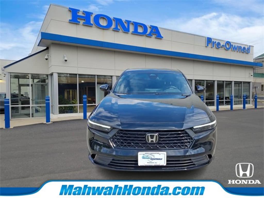 Honda of Mahwah is proud to present you with another True Market Priced Pre-Owned Vehicle. This 2023 Honda Accord Hybrid Sport-L is loaded with the following Factory Options: Accord Hybrid Sport-L, 2.0L 16V DOHC, and Black Accord Hybrid Sport-L, 2.0L 16V DOHC, Black, 4-Wheel Disc Brakes, 8 Speakers, ABS brakes, Adaptive Cruise Control: Adaptive Cruise Control (ACC) with Low-Speed Follow, Air Conditioning, Alloy wheels, AM/FM radio, Apple CarPlay/Android Auto, Auto High-beam Headlights, Automatic temperature control, Brake assist, Bumpers: body-color, Compass, Delay-off headlights, Driver door bin, Driver vanity mirror, Dual front impact airbags, Dual front side impact airbags, Electronic Stability Control, Emergency communication system: HondaLink, Exterior Parking Camera Rear, Four wheel independent suspension, Front anti-roll bar, Front Bucket Seats, Front Center Armrest, Front dual zone A/C, Front reading lights, Fully automatic headlights, Heated Front Bucket Seats, Heated front seats, Illuminated entry, Knee airbag, Lane departure: Lane Keeping Assist System (LKAS) active, Leather Shift Knob, Leather steering wheel, Leather-Trimmed Seat Trim, Low tire pressure warning, Memory seat, Occupant sensing airbag, Outside temperature display, Overhead airbag, Overhead console, Panic alarm, Passenger door bin, Passenger vanity mirror, Power door mirrors, Power driver seat, Power moonroof, Power passenger seat, Power steering, Power windows, Radio data system, Radio: 180-Watt Audio System, Rear anti-roll bar, Rear reading lights, Rear seat center armrest, Rear side impact airbag, Rear window defroster, Remote keyless entry, Security system, Speed control, Speed-sensing steering, Speed-Sensitive Wipers, Split folding rear seat, Spoiler, Steering wheel mounted audio controls, Telescoping steering wheel, Tilt steering wheel, Traction control, Trip computer, Variably intermittent wipers, and Wheels: 19" x 8.5J Matte Berlina Black!!