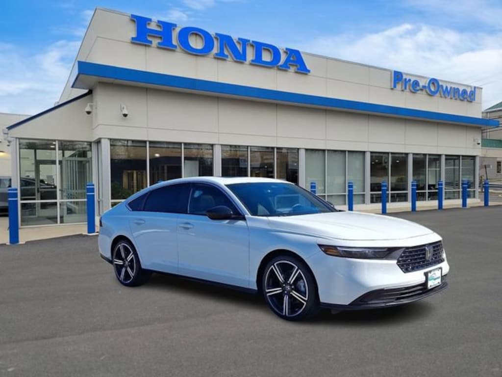 Honda of Mahwah is proud to present you with another True Market Priced Pre-Owned Vehicle. This 2023 Honda Accord Hybrid Sport is loaded with the following Factory Options: 2.0L 16V DOHC 2.0L 16V DOHC, 4-Wheel Disc Brakes, 8 Speakers, ABS brakes, Adaptive Cruise Control: Adaptive Cruise Control (ACC) with Low-Speed Follow, Air Conditioning, Alloy wheels, AM/FM radio, Apple CarPlay/Android Auto, Auto High-beam Headlights, Automatic temperature control, Brake assist, Bumpers: body-color, Compass, Delay-off headlights, Driver door bin, Driver vanity mirror, Dual front impact airbags, Dual front side impact airbags, Electronic Stability Control, Emergency communication system: HondaLink, Exterior Parking Camera Rear, Fabric Seat Trim, Four wheel independent suspension, Front anti-roll bar, Front Bucket Seats, Front Center Armrest, Front dual zone A/C, Front reading lights, Fully automatic headlights, Illuminated entry, Knee airbag, Lane departure: Lane Keeping Assist System (LKAS) active, Leather Shift Knob, Leather steering wheel, Low tire pressure warning, Occupant sensing airbag, Outside temperature display, Overhead airbag, Overhead console, Panic alarm, Passenger door bin, Passenger vanity mirror, Power door mirrors, Power driver seat, Power moonroof, Power steering, Power windows, Radio data system, Radio: 180-Watt Audio System, Rear anti-roll bar, Rear reading lights, Rear seat center armrest, Rear side impact airbag, Rear window defroster, Remote keyless entry, Security system, Speed control, Speed-sensing steering, Speed-Sensitive Wipers, Split folding rear seat, Spoiler, Steering wheel mounted audio controls, Telescoping steering wheel, Tilt steering wheel, Traction control, Trip computer, Variably intermittent wipers, and Wheels: 19" x 8.5J Berlina Black!!