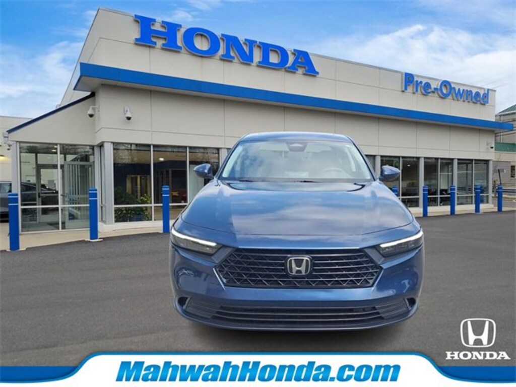 Honda of Mahwah is proud to present you with another True Market Priced Pre-Owned Vehicle. This 2023 Honda Accord EX is loaded with the following Factory Options: Accord EX, 4D Sedan, 1.5T I4 DOHC 16V Turbocharged VTEC, FWD, Canyon River Blue Metallic, and Black Cloth Accord EX, 4D Sedan, 1.5T I4 DOHC 16V Turbocharged VTEC, FWD, Canyon River Blue Metallic, Black Cloth, 4-Wheel Disc Brakes, 8 Speakers, ABS brakes, Adaptive Cruise Control: Adaptive Cruise Control (ACC) with Low-Speed Follow, Air Conditioning, Alloy wheels, AM/FM radio, Apple CarPlay/Android Auto, Auto High-beam Headlights, Auto-dimming Rear-View mirror, Automatic temperature control, Brake assist, Bumpers: body-color, Compass, Delay-off headlights, Driver door bin, Driver vanity mirror, Dual front impact airbags, Dual front side impact airbags, Electronic Stability Control, Emergency communication system: HondaLink Assist, Exterior Parking Camera Rear, Fabric Seat Trim, Four wheel independent suspension, Front anti-roll bar, Front Bucket Seats, Front Center Armrest, Front dual zone A/C, Front reading lights, Fully automatic headlights, Heated door mirrors, Heated Front Bucket Seats, Heated front seats, Illuminated entry, Knee airbag, Lane departure: Lane Keeping Assist System (LKAS) active, Low tire pressure warning, Occupant sensing airbag, Outside temperature display, Overhead airbag, Overhead console, Panic alarm, Passenger door bin, Passenger vanity mirror, Power door mirrors, Power driver seat, Power moonroof, Power steering, Power windows, Radio data system, Radio: 180-Watt AM/FM Audio System, Rear anti-roll bar, Rear reading lights, Rear seat center armrest, Rear side impact airbag, Rear window defroster, Remote keyless entry, Security system, Speed control, Speed-sensing steering, Speed-Sensitive Wipers, Split folding rear seat, Steering wheel mounted audio controls, Tachometer, Telescoping steering wheel, Tilt steering wheel, Traction control, Trip computer, Variably intermittent wipers, and Wheels: 17" x 7.5" Pewter Gray!!