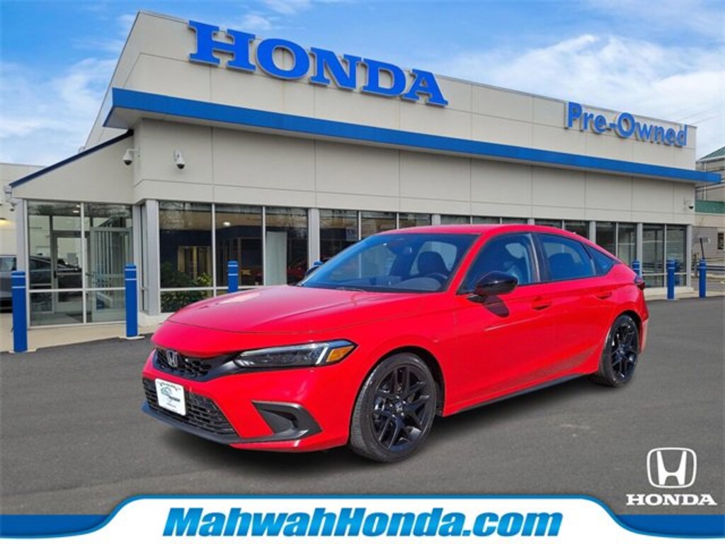 Honda of Mahwah is proud to present you with another True Market Priced Pre-Owned Vehicle. This 2023 Honda Civic Sport is loaded with the following Factory Options: Black Cloth Black Cloth, 18" Alloy Wheels, 4-Wheel Disc Brakes, 8 Speakers, ABS brakes, Adaptive Cruise Control: Adaptive Cruise Control (ACC) with Low-Speed Follow, Air Conditioning, Alloy wheels, AM/FM radio, Apple CarPlay/Android Auto, Auto High-beam Headlights, Automatic temperature control, Brake assist, Bumpers: body-color, Delay-off headlights, Driver door bin, Driver vanity mirror, Dual front impact airbags, Dual front side impact airbags, Electronic Stability Control, Emergency communication system: HondaLink, Exterior Parking Camera Rear, Fabric Seating Surfaces, Four wheel independent suspension, Front anti-roll bar, Front Bucket Seats, Front Center Armrest, Front reading lights, Fully automatic headlights, Illuminated entry, Knee airbag, Lane departure: Lane Keeping Assist System (LKAS) active, Leather Shift Knob, Leather steering wheel, Low tire pressure warning, Occupant sensing airbag, Outside temperature display, Overhead airbag, Panic alarm, Passenger door bin, Passenger vanity mirror, Power door mirrors, Power steering, Power windows, Radio data system, Radio: 180-Watt Audio System, Rear anti-roll bar, Rear side impact airbag, Rear window defroster, Rear window wiper, Remote keyless entry, Security system, Speed control, Speed-sensing steering, Split folding rear seat, Steering wheel mounted audio controls, Tachometer, Telescoping steering wheel, Tilt steering wheel, Traction control, Trip computer, and Voltmeter!!