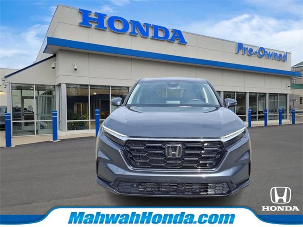 Honda of Mahwah is proud to present you with another True Market Priced Pre-Owned Vehicle. This 2025 Honda CR-V EX-L is loaded with the following Factory Options: 4-Wheel Disc Brakes, 8 Speakers, ABS brakes, Adaptive Cruise Control: Adaptive Cruise Control (ACC) with Low-Speed Follow, Air Conditioning, Alloy wheels, AM/FM radio: SiriusXM, Auto High-beam Headlights, Auto-dimming Rear-View mirror, Automatic temperature control, Blind Spot Information (BSI) System warning, Brake assist, Bumpers: body-color, Compass, Delay-off headlights, Driver door bin, Driver vanity mirror, Dual front impact airbags, Dual front side impact airbags, Electronic Stability Control, Exterior Parking Camera Rear, Four wheel independent suspension, Front anti-roll bar, Front Bucket Seats, Front Center Armrest, Front dual zone A/C, Front reading lights, Fully automatic headlights, Heated door mirrors, Heated Front Bucket Seats, Heated front seats, Illuminated entry, Knee airbag, Leather Seat Trim, Leather Shift Knob, Leather steering wheel, Low tire pressure warning, Memory seat, Occupant sensing airbag, Outside temperature display, Overhead airbag, Overhead console, Panic alarm, Passenger door bin, Passenger vanity mirror, Power door mirrors, Power driver seat, Power Liftgate, Power moonroof, Power passenger seat, Power steering, Power windows, Radio data system, Radio: 320-Watt AM/FM/HD/SiriusXM Audio System, Rear anti-roll bar, Rear reading lights, Rear seat center armrest, Rear side impact airbag, Rear window defroster, Rear window wiper, Remote keyless entry, Security system, Speed control, Speed-sensing steering, Speed-Sensitive Wipers, Split folding rear seat, Spoiler, Steering wheel mounted audio controls, Tachometer, Telescoping steering wheel, Tilt steering wheel, Traction control, Trip computer, Turn signal indicator mirrors, and Variably intermittent wipers!!
