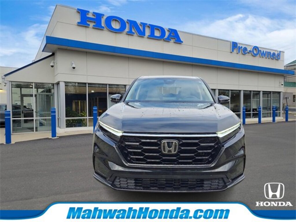 Honda of Mahwah is proud to present you with another True Market Priced Pre-Owned Vehicle. This 2025 Honda CR-V EX is loaded with the following Factory Options: CR-V EX, 4D Sport Utility, 1.5L I4 DOHC 16V, CVT, FWD, Crystal Black Pearl, and Gray w/Cloth Seat Trim CR-V EX, 4D Sport Utility, 1.5L I4 DOHC 16V, CVT, FWD, Crystal Black Pearl, Gray w/Cloth Seat Trim, 4-Wheel Disc Brakes, 6 Speakers, ABS brakes, Adaptive Cruise Control: Adaptive Cruise Control (ACC) with Low-Speed Follow, Air Conditioning, Alloy wheels, Apple CarPlay/Android Auto, Auto High-beam Headlights, Automatic temperature control, Blind Spot Information (BSI) System warning, Brake assist, Bumpers: body-color, Cloth Seat Trim, Compass, Delay-off headlights, Driver door bin, Driver vanity mirror, Dual front impact airbags, Dual front side impact airbags, Electronic Stability Control, Exterior Parking Camera Rear, Four wheel independent suspension, Front anti-roll bar, Front Bucket Seats, Front Center Armrest, Front dual zone A/C, Front reading lights, Fully automatic headlights, Heated door mirrors, Heated Front Bucket Seats, Heated front seats, Illuminated entry, Knee airbag, Low tire pressure warning, Occupant sensing airbag, Outside temperature display, Overhead airbag, Overhead console, Panic alarm, Passenger door bin, Passenger vanity mirror, Power door mirrors, Power driver seat, Power moonroof, Power steering, Power windows, Radio data system, Radio: 240-Watt AM/FM Audio System, Rear anti-roll bar, Rear reading lights, Rear seat center armrest, Rear side impact airbag, Rear window defroster, Rear window wiper, Remote keyless entry, Security system, Speed control, Speed-sensing steering, Speed-Sensitive Wipers, Split folding rear seat, Spoiler, Steering wheel mounted audio controls, Tachometer, Telescoping steering wheel, Tilt steering wheel, Traction control, Trip computer, Turn signal indicator mirrors, and Variably intermittent wipers!!