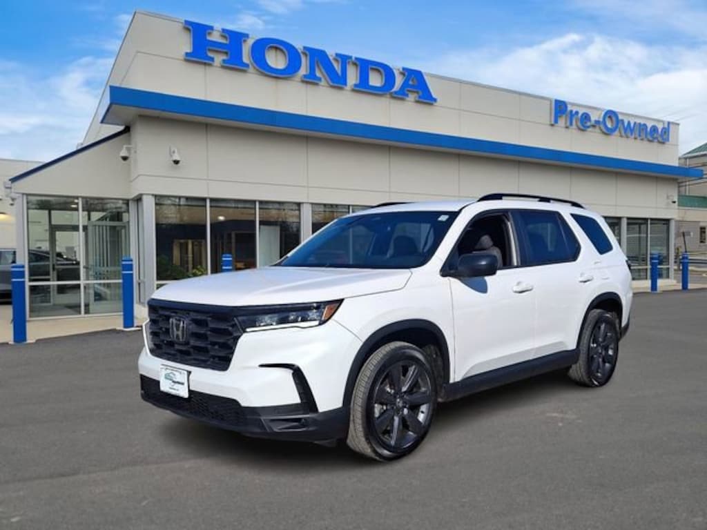 Honda of Mahwah is proud to present you with another True Market Priced Pre-Owned Vehicle. This 2025 Honda Pilot Sport is loaded with the following Factory Options: AWD AWD, 3rd row seats: split-bench, 4-Wheel Disc Brakes, 4.167 Axle Ratio, 7 Speakers, ABS brakes, Adaptive Cruise Control: Adaptive Cruise Control (ACC) with Low-Speed Follow, Air Conditioning, Alloy wheels, Apple CarPlay/Android Auto, Auto High-beam Headlights, Automatic temperature control, Blind Spot Information (BSI) System warning, Brake assist, Bumpers: body-color, Cloth Seat Trim, Delay-off headlights, Driver door bin, Driver vanity mirror, Dual front impact airbags, Dual front side impact airbags, Electronic Stability Control, Emergency communication system: HondaLink Assist, Exterior Parking Camera Rear, Four wheel independent suspension, Front anti-roll bar, Front Bucket Seats, Front Center Armrest, Front dual zone A/C, Front fog lights, Front reading lights, Fully automatic headlights, Heated Front Bucket Seats, Heated front seats, Illuminated entry, Knee airbag, Lane departure: Lane Keeping Assist System (LKAS) active, Low tire pressure warning, Occupant sensing airbag, Outside temperature display, Overhead airbag, Overhead console, Panic alarm, Passenger door bin, Passenger vanity mirror, Power door mirrors, Power driver seat, Power passenger seat, Power steering, Power windows, Radio data system, Radio: 240-Watt Audio System, Rear air conditioning, Rear anti-roll bar, Rear reading lights, Rear seat center armrest, Rear window defroster, Rear window wiper, Reclining 3rd row seat, Remote keyless entry, Security system, Speed control, Speed-sensing steering, Speed-Sensitive Wipers, Split folding rear seat, Spoiler, Steering wheel mounted audio controls, Tachometer, Telescoping steering wheel, Tilt steering wheel, Traction control, Trip computer, Variably intermittent wipers, and Wheels: 20" Shark Gray with Black Lug Nuts!!