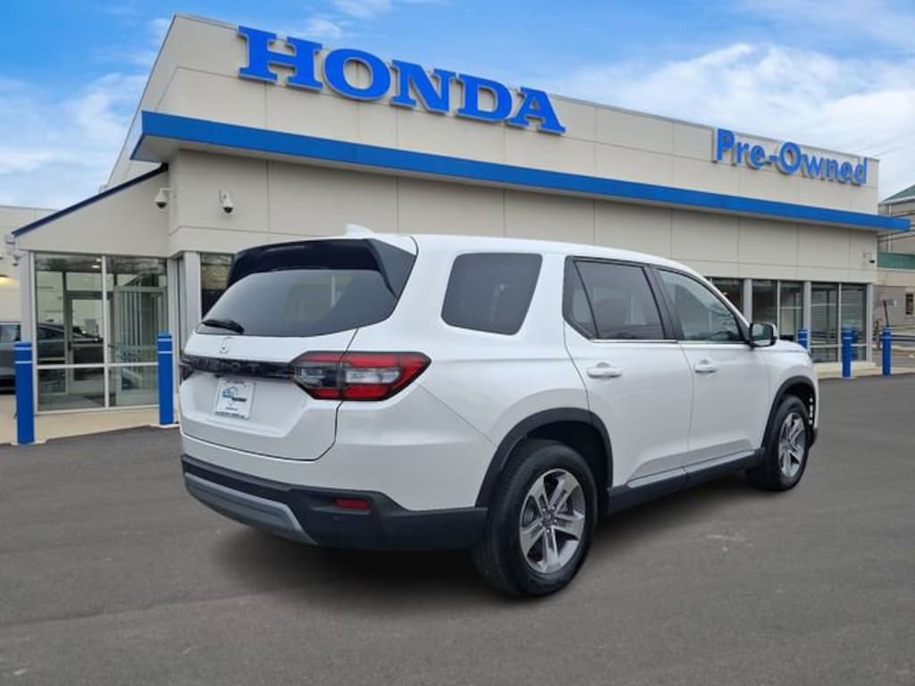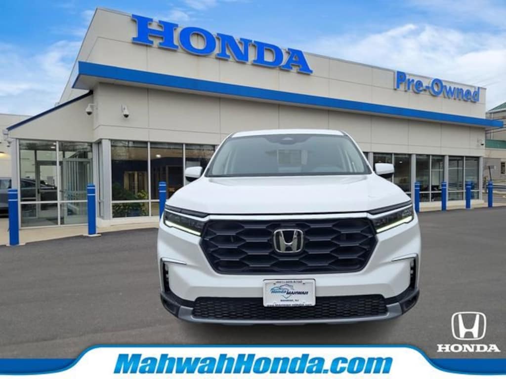 Honda of Mahwah is proud to present you with another True Market Priced Pre-Owned Vehicle. This 2025 Honda Pilot EX-L is loaded with the following Factory Options: 3rd row seats: split-bench, 4-Wheel Disc Brakes, 4.167 Axle Ratio, 9 Speakers, ABS brakes, Adaptive Cruise Control: Adaptive Cruise Control (ACC) with Low-Speed Follow, Air Conditioning, Alloy wheels, AM/FM radio: SiriusXM, Apple CarPlay/Android Auto, Auto High-beam Headlights, Auto-dimming Rear-View mirror, Automatic temperature control, Blind Spot Information (BSI) System warning, Brake assist, Bumpers: body-color, Delay-off headlights, Driver door bin, Driver vanity mirror, Dual front impact airbags, Dual front side impact airbags, Electronic Stability Control, Emergency communication system: HondaLink Assist, Exterior Parking Camera Rear, Four wheel independent suspension, Front anti-roll bar, Front Bucket Seats, Front Center Armrest, Front dual zone A/C, Front fog lights, Front reading lights, Fully automatic headlights, Garage door transmitter: HomeLink, Heated door mirrors, Heated Front Bucket Seats, Heated front seats, Illuminated entry, Knee airbag, Lane departure: Lane Keeping Assist System (LKAS) active, Leather Seat Trim, Low tire pressure warning, Memory seat, Occupant sensing airbag, Outside temperature display, Overhead airbag, Overhead console, Panic alarm, Passenger door bin, Passenger vanity mirror, Power door mirrors, Power driver seat, Power Liftgate, Power passenger seat, Power steering, Power windows, Radio data system, Radio: 245-Watt Audio System, Rear air conditioning, Rear anti-roll bar, Rear reading lights, Rear seat center armrest, Rear window defroster, Rear window wiper, Reclining 3rd row seat, Remote keyless entry, Security system, SiriusXM, Speed control, Speed-sensing steering, Speed-Sensitive Wipers, Split folding rear seat, Spoiler, Steering wheel mounted audio controls, Tachometer, Telescoping steering wheel, Tilt steering wheel, Traction control, Trip computer, Turn signal indicator mirrors, Variably intermittent wipers, and Wheels: 18" Pewter Gray Machined Face!!