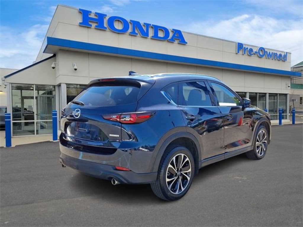 Honda of Mahwah is proud to present you with another True Market Priced Pre-Owned Vehicle. This 2022 Mazda CX-5 2.5 S Premium Package is loaded with the following Factory Options: 4-Wheel Disc Brakes, 4.624 Axle Ratio, 6 Speakers, ABS brakes, Air Conditioning, Alloy wheels, AppLink/Apple CarPlay and Android Auto, Auto High-beam Headlights, Auto-dimming Rear-View mirror, Automatic temperature control, Brake assist, Bumpers: body-color, Delay-off headlights, Driver door bin, Driver vanity mirror, Dual front impact airbags, Dual front side impact airbags, E911 Automatic Emergency Notification, Electronic Stability Control, Emergency communication system: MAZDA CONNECT, Exterior Parking Camera Rear, First Aid Kit, Four wheel independent suspension, Front anti-roll bar, Front Bucket Seats, Front Center Armrest w/Storage, Front dual zone A/C, Front reading lights, Fully automatic headlights, Garage door transmitter: HomeLink, Heated door mirrors, Heated Front Bucket Seats, Heated front seats, Illuminated entry, Infotainment System Voice Command, Leather Seat Trim, Leather Shift Knob, Low tire pressure warning, Memory seat, Multifunction Commander Control, Occupant sensing airbag, Outside temperature display, Overhead airbag, Overhead console, Pandora, Panic alarm, Passenger door bin, Passenger vanity mirror, Power door mirrors, Power driver seat, Power moonroof, Power passenger seat, Power steering, Power windows, Premium audio system: Bose, Radio Broadcast Data System Program Information, Radio data system, Radio: AM/FM/HD Audio System, Rain sensing wipers, Rear anti-roll bar, Rear reading lights, Rear seat center armrest, Rear window defroster, Rear window wiper, Remote keyless entry, Roof Rack Side Rails, SMS Text Msg Audio Delivery & Reply, Speed control, Speed-sensing steering, Split folding rear seat, Spoiler, Steering wheel mounted audio controls, Tachometer, Telescoping steering wheel, Tilt steering wheel, Traction control, Trip computer, Turn signal indicator mirrors, Variably intermittent wipers, Wheel Locks, and Wheels: 19" x 7J Aluminum Alloy!!