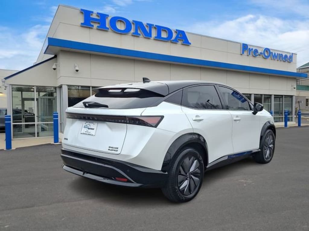 Honda of Mahwah is proud to present you with another True Market Priced Pre-Owned Vehicle. This 2023 Nissan Ariya ENGAGE e-4ORCE is loaded with the following Factory Options: 19" Alloy Wheels, 4-Wheel Disc Brakes, 6 Speakers, 8.896/7.679 Final Drive Ratio, ABS brakes, Air Conditioning, Alloy wheels, AM/FM radio: SiriusXM, Auto High-beam Headlights, Automatic temperature control, Brake assist, Bumpers: body-color, Carpeted Floor Mats & First Aid Kit, Delay-off headlights, Driver door bin, Driver vanity mirror, Dual front impact airbags, Dual front side impact airbags, Electronic Stability Control, Emergency communication system: NissanConnect EV & Services, Four wheel independent suspension, Front anti-roll bar, Front Bucket Seats, Front Center Armrest, Front dual zone A/C, Front reading lights, Heads-Up Display, Heated door mirrors, Heated Front Bucket Seats, Heated front seats, Heated rear seats, Heated steering wheel, Illuminated entry, Illuminated Kick Plates, Knee airbag, Leather steering wheel, Leatherette Seating Surfaces, Low tire pressure warning, Memory seat, Navigation system: Nissan Door to Door Connected Navigation, Occupant sensing airbag, Outside temperature display, Overhead airbag, Panic alarm, Passenger door bin, Passenger vanity mirror, Power door mirrors, Power driver seat, Power steering, Power windows, Radio: AM/FM Audio System, Rear anti-roll bar, Rear reading lights, Rear seat center armrest, Rear side impact airbag, Rear window defroster, Rear window wiper, Remote keyless entry, Security system, Speed control, Speed-sensing steering, Speed-Sensitive Wipers, Split folding rear seat, Spoiler, Steering wheel mounted audio controls, Telescoping steering wheel, Tilt steering wheel, Traction control, Trip computer, and Variably intermittent wipers!!