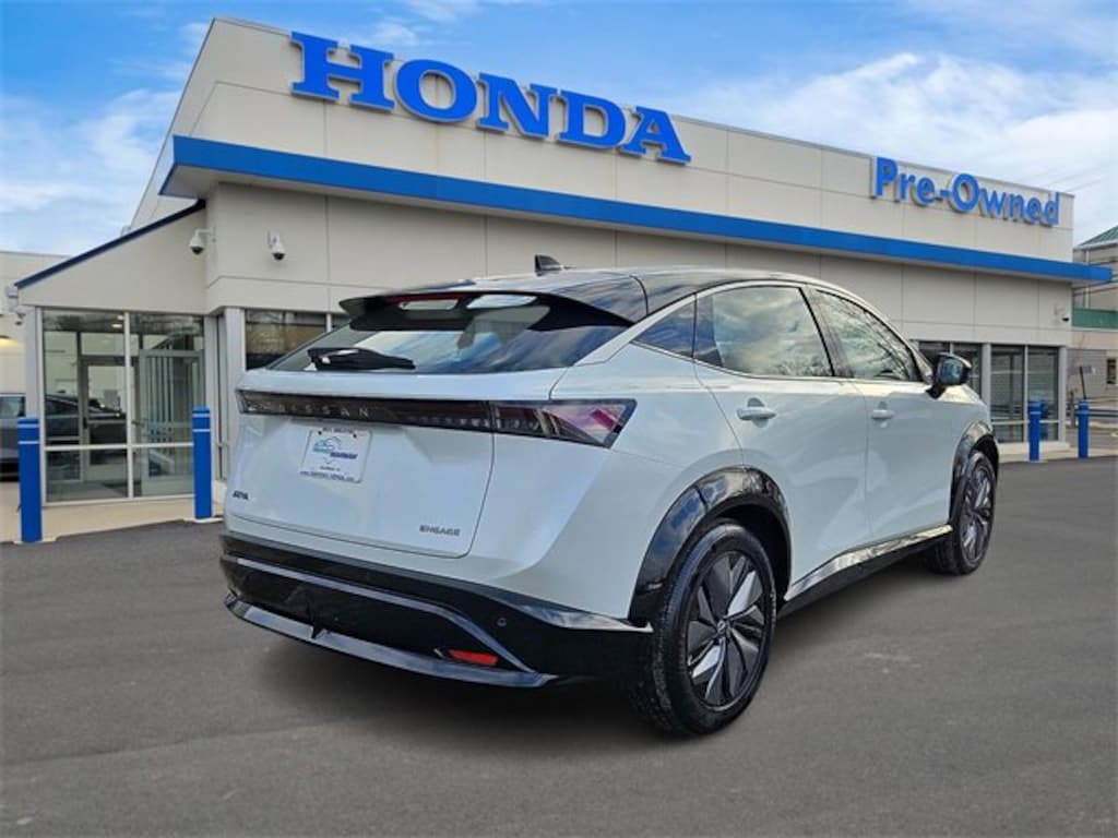 Honda of Mahwah is proud to present you with another True Market Priced Pre-Owned Vehicle. This 2024 Nissan Ariya ENGAGE is loaded with the following Factory Options: 11.090 Final Drive Ratio, 19" Alloy Wheels, 4-Wheel Disc Brakes, 6 Speakers, ABS brakes, Air Conditioning, Alloy wheels, AM/FM radio: SiriusXM, Auto High-beam Headlights, Automatic temperature control, Brake assist, Bumpers: body-color, Carpeted Floor Mats & First Aid Kit, Delay-off headlights, Driver door bin, Driver vanity mirror, Dual front impact airbags, Dual front side impact airbags, Electronic Stability Control, Emergency communication system: NissanConnect EV & Services, Four wheel independent suspension, Front anti-roll bar, Front Bucket Seats, Front Center Armrest, Front dual zone A/C, Front reading lights, Heads-Up Display, Heated door mirrors, Heated Front Bucket Seats, Heated front seats, Heated rear seats, Heated steering wheel, Illuminated entry, Knee airbag, Leather steering wheel, Leatherette Seating Surfaces, Low tire pressure warning, Memory seat, Navigation system: Nissan Door to Door Connected Navigation, Occupant sensing airbag, Outside temperature display, Overhead airbag, Panic alarm, Passenger door bin, Passenger vanity mirror, Power door mirrors, Power driver seat, Power steering, Power windows, Radio: AM/FM Audio System, Rear anti-roll bar, Rear reading lights, Rear seat center armrest, Rear side impact airbag, Rear window defroster, Rear window wiper, Remote keyless entry, Security system, Speed control, Speed-sensing steering, Speed-Sensitive Wipers, Split folding rear seat, Spoiler, Steering wheel mounted audio controls, Telescoping steering wheel, Tilt steering wheel, Traction control, Trip computer, and Variably intermittent wipers!!