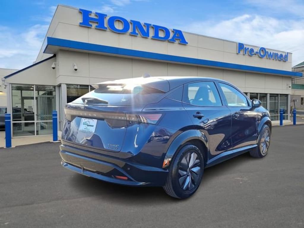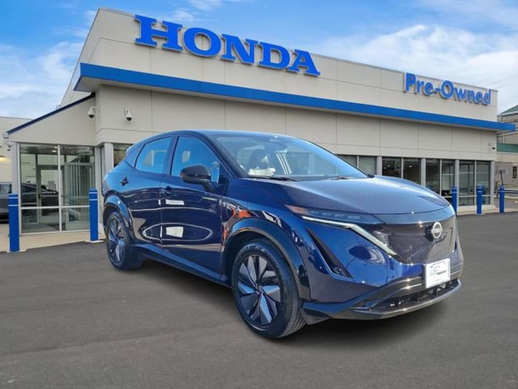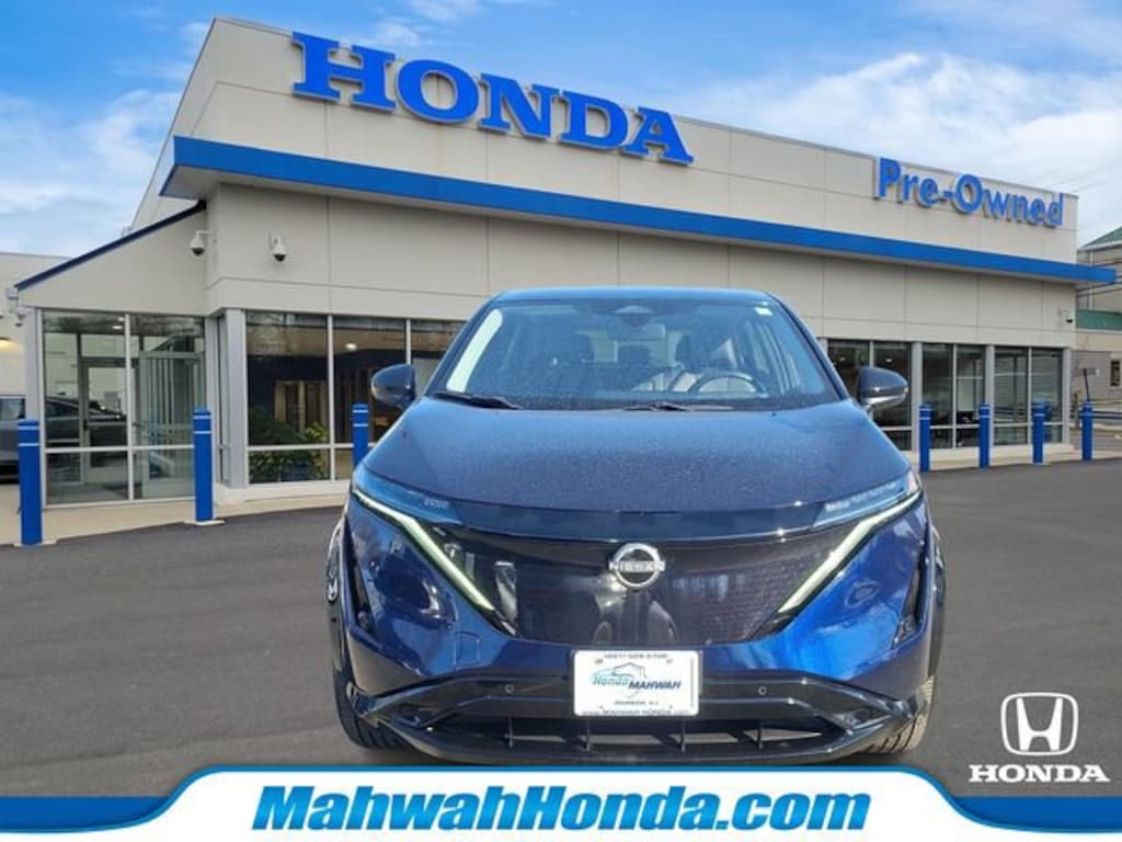 Honda of Mahwah is proud to present you with another True Market Priced Pre-Owned Vehicle. This 2024 Nissan Ariya ENGAGE+ e-4ORCE is loaded with the following Factory Options: 19" Alloy Wheels, 4-Wheel Disc Brakes, 6 Speakers, 8.896/7.679 Final Drive Ratio, ABS brakes, Air Conditioning, Alloy wheels, AM/FM radio: SiriusXM, Auto High-beam Headlights, Automatic temperature control, Brake assist, Bumpers: body-color, Carpeted Floor Mats & First Aid Kit, Delay-off headlights, Driver door bin, Driver vanity mirror, Dual front impact airbags, Dual front side impact airbags, Electronic Stability Control, Emergency communication system: NissanConnect EV & Services, Four wheel independent suspension, Front anti-roll bar, Front Bucket Seats, Front Center Armrest, Front dual zone A/C, Front reading lights, Heads-Up Display, Heated door mirrors, Heated Front Bucket Seats, Heated front seats, Heated rear seats, Heated steering wheel, Illuminated entry, Knee airbag, Leather steering wheel, Leatherette Seating Surfaces, Low tire pressure warning, Memory seat, Navigation system: Nissan Door to Door Connected Navigation, Nissan USB Charging Cable Set, Occupant sensing airbag, Outside temperature display, Overhead airbag, Panic alarm, Passenger door bin, Passenger vanity mirror, Power door mirrors, Power driver seat, Power steering, Power windows, Radio: AM/FM Audio System, Rear anti-roll bar, Rear reading lights, Rear seat center armrest, Rear side impact airbag, Rear window defroster, Rear window wiper, Remote keyless entry, Security system, Speed control, Speed-sensing steering, Speed-Sensitive Wipers, Split folding rear seat, Spoiler, Steering wheel mounted audio controls, Telescoping steering wheel, Tilt steering wheel, Traction control, Trip computer, and Variably intermittent wipers!!
