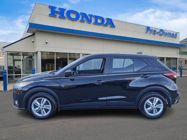 Honda of Mahwah is proud to present you with another True Market Priced Pre-Owned Vehicle. This 2025 Nissan Kicks Play S is loaded with the following Factory Options: 16" Steel Wheels with Full Covers, 6 Speakers, ABS brakes, Air Conditioning, AM/FM Audio System, AM/FM radio, Apple CarPlay/Android Auto, Auto High-beam Headlights, Blind Spot Warning, Brake assist, Bumpers: body-color, Carpeted Floor Mats with Cargo Mat, Center Armrest with Storage, Cloth Seat Trim with Single Stitch, Driver door bin, Driver vanity mirror, Driver's Seat Mounted Armrest, Dual front impact airbags, Dual front side impact airbags, Electronic Stability Control, Front anti-roll bar, Front Bucket Seats, Front reading lights, Front wheel independent suspension, Fully automatic headlights, Illuminated entry, Knee airbag, Low tire pressure warning, Occupant sensing airbag, Outside temperature display, Overhead airbag, Panic alarm, Passenger door bin, Passenger vanity mirror, Power door mirrors, Power steering, Power windows, Radio data system, Rear Parking Sensors, Rear reading lights, Rear side impact airbag, Rear window defroster, Rear window wiper, Remote keyless entry, Speed control, Splash Guards Grain (4 Piece), Split folding rear seat, Sport steering wheel, Steering wheel mounted audio controls, Tachometer, Telescoping steering wheel, Tilt steering wheel, Traction control, Trip computer, and Variably intermittent wipers!!