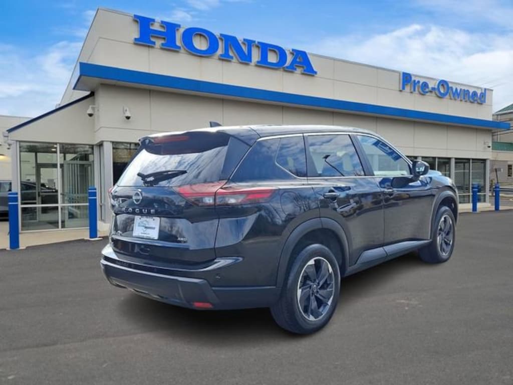 Honda of Mahwah is proud to present you with another True Market Priced Pre-Owned Vehicle. This 2025 Nissan Rogue SV is loaded with the following Factory Options: AWD AWD, 4-Wheel Disc Brakes, 6 Speakers, ABS brakes, Air Conditioning, Alloy wheels, AM/FM radio: SiriusXM, Android Auto and Apple CarPlay, Auto High-beam Headlights, Automatic temperature control, Brake assist, Bumpers: body-color, Cloth Seat Trim with Patterned Inserts, Delay-off headlights, Driver door bin, Driver vanity mirror, Dual front impact airbags, Dual front side impact airbags, Electronic Stability Control, Emergency communication system: NissanConnect Services, First Aid Kit, Floor Mats with 1-Piece Cargo Area Protector, Four wheel independent suspension, Front anti-roll bar, Front Bucket Seats, Front Bucket Seats with 8-Way Power Driver Seat, Front Center Armrest, Front dual zone A/C, Front reading lights, Fully automatic headlights, Heated door mirrors, Illuminated entry, Knee airbag, Low tire pressure warning, Occupant sensing airbag, Outside temperature display, Overhead airbag, Overhead console, Panic alarm, Passenger door bin, Passenger vanity mirror, Power door mirrors, Power driver seat, Power Liftgate, Power steering, Power windows, Radio data system, Radio: NissanConnect with 6 Speakers, Rear anti-roll bar, Rear seat center armrest, Rear side impact airbag, Rear window defroster, Rear window wiper, Remote keyless entry, Speed control, Speed-sensing steering, Speed-Sensitive Wipers, Split folding rear seat, Spoiler, Steering wheel mounted audio controls, Tachometer, Telescoping steering wheel, Tilt steering wheel, Traction control, Trip computer, Variably intermittent wipers, and Wheels: 18" Dark Painted Machine Finished Alloy!!