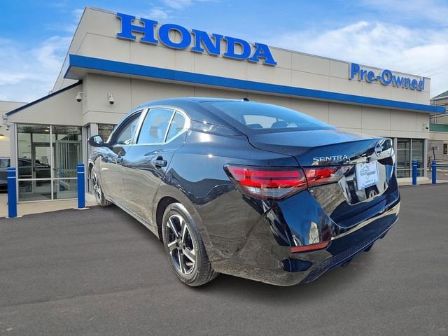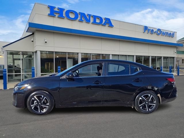 Honda of Mahwah is proud to present you with another True Market Priced Pre-Owned Vehicle. This 2025 Nissan Sentra SV is loaded with the following Factory Options: CVT with Xtronic and Charcoal Cloth CVT with Xtronic, Charcoal Cloth, 16" Alloy Wheels, 4-Wheel Disc Brakes, 8 Speakers, ABS brakes, Air Conditioning, Alloy wheels, AM/FM radio: SiriusXM, Auto High-beam Headlights, Blind Spot Warning, Brake assist, Bumpers: body-color, Carpeted Floor Mats with Trunk Mat, Delay-off headlights, Driver door bin, Driver vanity mirror, Dual front impact airbags, Dual front side impact airbags, Electronic Stability Control, Four wheel independent suspension, Front anti-roll bar, Front Bucket Seats, Front Center Armrest, Front reading lights, Fully automatic headlights, Illuminated entry, Knee airbag, Low tire pressure warning, NissanConnect featuring Apple CarPlay and Android Auto, Occupant sensing airbag, Outside temperature display, Overhead airbag, Overhead console, Panic alarm, Passenger door bin, Passenger vanity mirror, Power door mirrors, Power steering, Power windows, Radio data system, Radio: AM/FM with RDS/MP3/Aux-in, Rear anti-roll bar, Rear Parking Sensors, Rear side impact airbag, Rear window defroster, Remote keyless entry, Security system, Speed control, Speed-sensing steering, Split folding rear seat, Steering wheel mounted audio controls, Tachometer, Telescoping steering wheel, Tilt steering wheel, Traction control, Trip computer, Upgraded Cloth Seat Trim, and Variably intermittent wipers!!