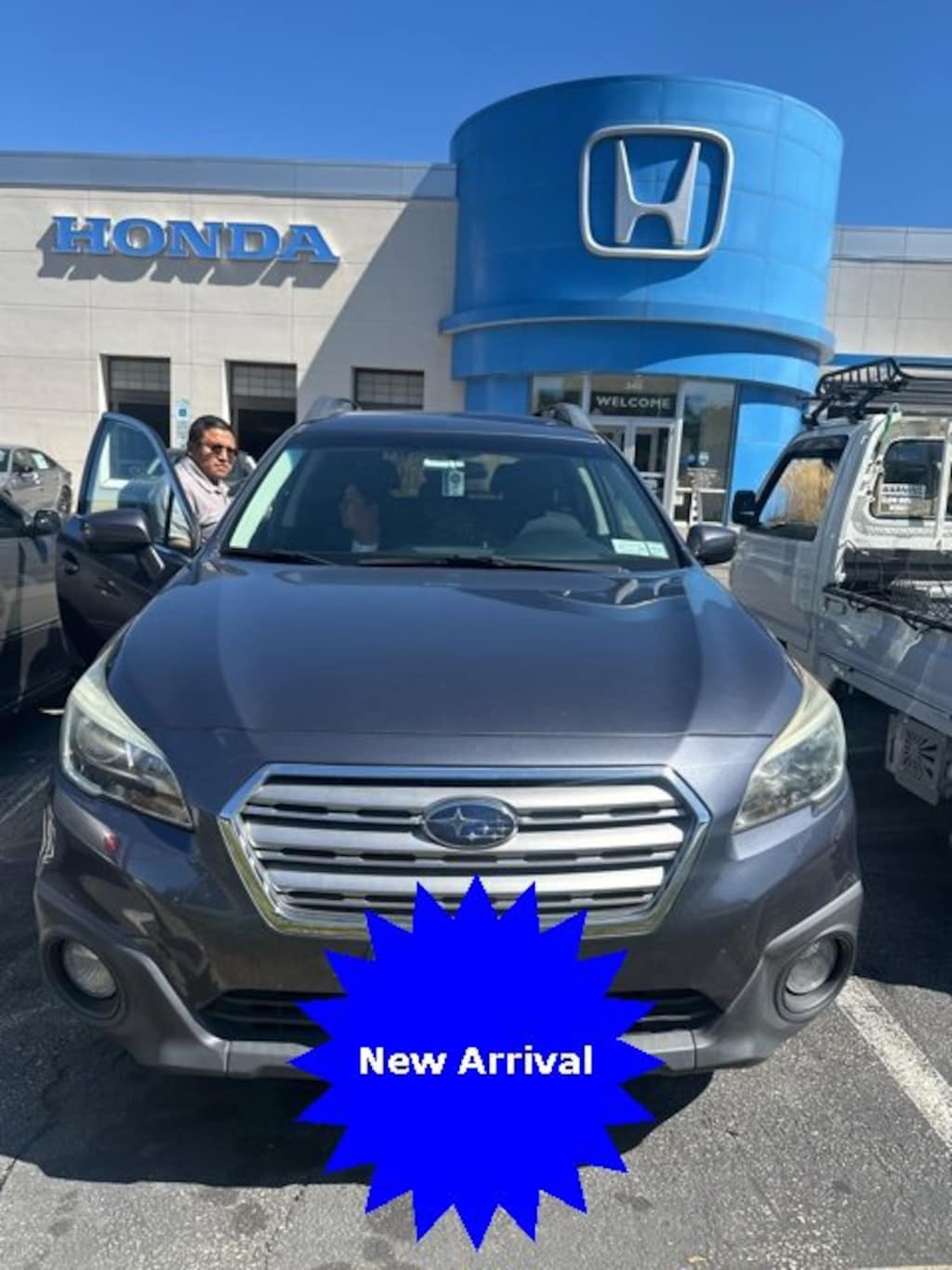 Honda of Mahwah is proud to present you with another True Market Priced Pre-Owned Vehicle. This 2015 Subaru Outback 2.5i Premium is loaded with the following Factory Options: Standard Model, 17" x 7.0" Aluminum Alloy w/Silver Finish Wheels, 4-Wheel Disc Brakes, 4.111 Axle Ratio, 6 Speakers, ABS brakes, Air Conditioning, Alloy wheels, AM/FM radio: SiriusXM, Anti-whiplash front head restraints, Automatic temperature control, Brake assist, Bumpers: body-color, CD player, Cloth Upholstery, Driver door bin, Driver vanity mirror, Dual front impact airbags, Dual front side impact airbags, Electronic Stability Control, Exterior Parking Camera Rear, Four wheel independent suspension, Front anti-roll bar, Front Bucket Seats, Front Center Armrest w/Storage, Front dual zone A/C, Front fog lights, Front reading lights, Fully automatic headlights, Heated door mirrors, Heated front seats, Heated Reclining Front Bucket Seats, Illuminated entry, Leather Shift Knob, Low tire pressure warning, Occupant sensing airbag, Outside temperature display, Overhead airbag, Overhead console, Panic alarm, Passenger door bin, Passenger vanity mirror, Power door mirrors, Power driver seat, Power steering, Power windows, Radio data system, Radio: AM/FM Stereo HD Radio w/Single Disc CD, Rear anti-roll bar, Rear seat center armrest, Rear window defroster, Rear window wiper, Rear-Vision Camera, Remote keyless entry, Roof rack, Security system, Speed control, Speed-sensing steering, Split folding rear seat, Spoiler, Steering wheel mounted audio controls, Steering-Wheel Paddle-Shift Control Switches, Tachometer, Telescoping steering wheel, Tilt steering wheel, Traction control, Trip computer, Variably intermittent wipers, and Vehicle Information Display!!