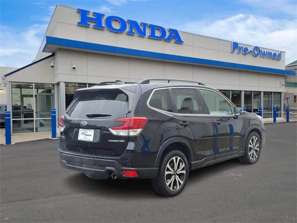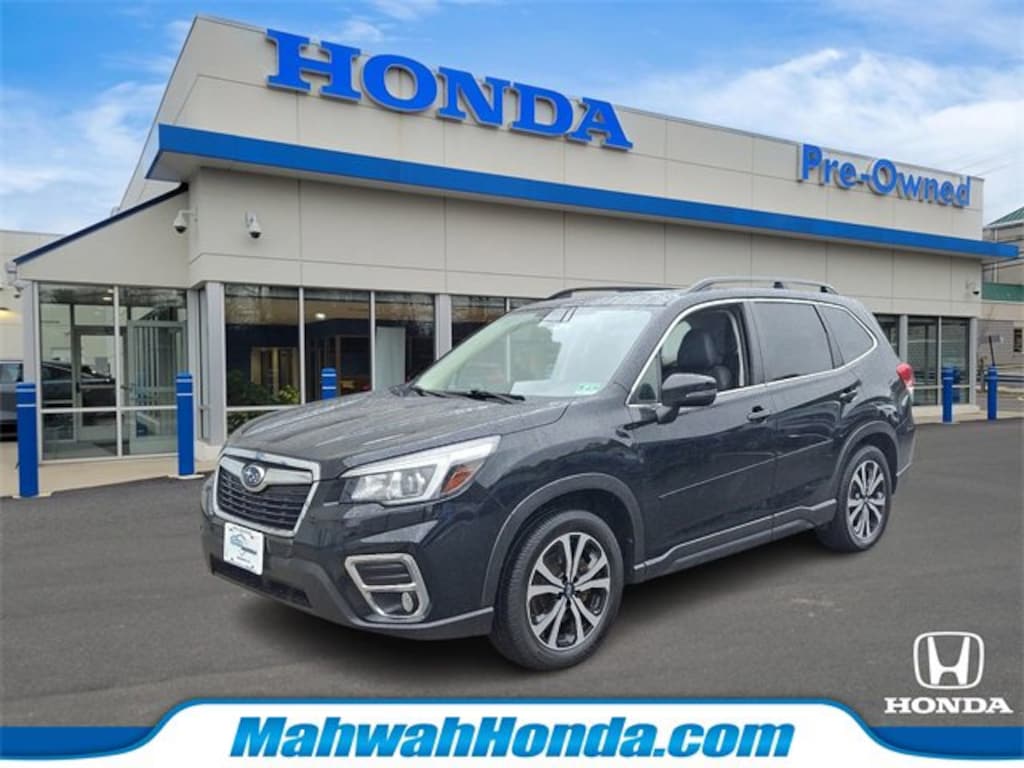 Honda of Mahwah is proud to present you with another True Market Priced Pre-Owned Vehicle. This 2019 Subaru Forester Limited is loaded with the following Factory Options: Forester Limited, 4D Sport Utility, 2.5L 4-Cylinder DOHC 16V VVT, Lineartronic CVT, AWD, Crystal Black Silica, and Black Leather Nav System & harman kardon & Reverse Auto Braking (harman kardon 576W Amp & Speaker System, Heated Steering Wheel, Radio: Subaru Starlink 8.0" Multimedia Nav System, and Reverse Automatic Braking System (RAB)), Forester Limited, 4D Sport Utility, 2.5L 4-Cylinder DOHC 16V VVT, Lineartronic CVT, AWD, Crystal Black Silica, Black Leather, 3.70 Axle Ratio, 4-Wheel Disc Brakes, 6 Speakers, ABS brakes, Air Conditioning, Alloy wheels, AM/FM radio: SiriusXM, Auto High-beam Headlights, Automatic temperature control, Brake assist, Bumpers: body-color, CD player, Driver door bin, Driver vanity mirror, Dual front impact airbags, Dual front side impact airbags, Electronic Stability Control, Emergency communication system: STARLINK Safety and Security, Exterior Parking Camera Rear, Four wheel independent suspension, Front anti-roll bar, Front Bucket Seats, Front Center Armrest, Front dual zone A/C, Front fog lights, Front reading lights, Fully automatic headlights, Heated door mirrors, Heated Front Bucket Seats, Heated front seats, Illuminated entry, Knee airbag, Leather Shift Knob, Low tire pressure warning, Navigation System, Occupant sensing airbag, Outside temperature display, Overhead airbag, Overhead console, Panic alarm, Passenger door bin, Passenger vanity mirror, Perforated Leather-Trimmed Upholstery, Power door mirrors, Power driver seat, Power Liftgate, Power moonroof: Panoramic, Power steering, Power windows, Radio data system, Radio: Subaru Starlink 8.0" Multimedia Plus System, Rear anti-roll bar, Rear seat center armrest, Rear window defroster, Rear window wiper, Remote keyless entry, Roof rack: rails only, Security system, Speed control, Speed-sensing steering, Split folding rear seat, Spoiler, STARLINK/Apple CarPlay/Android Auto, Steering wheel mounted audio controls, Tachometer, Telescoping steering wheel, Tilt steering wheel, Traction control, Trip computer, Turn signal indicator mirrors, Variably intermittent wipers, and Wheels: 18" x 7.0J Black Machine Finish Alum Alloy!!