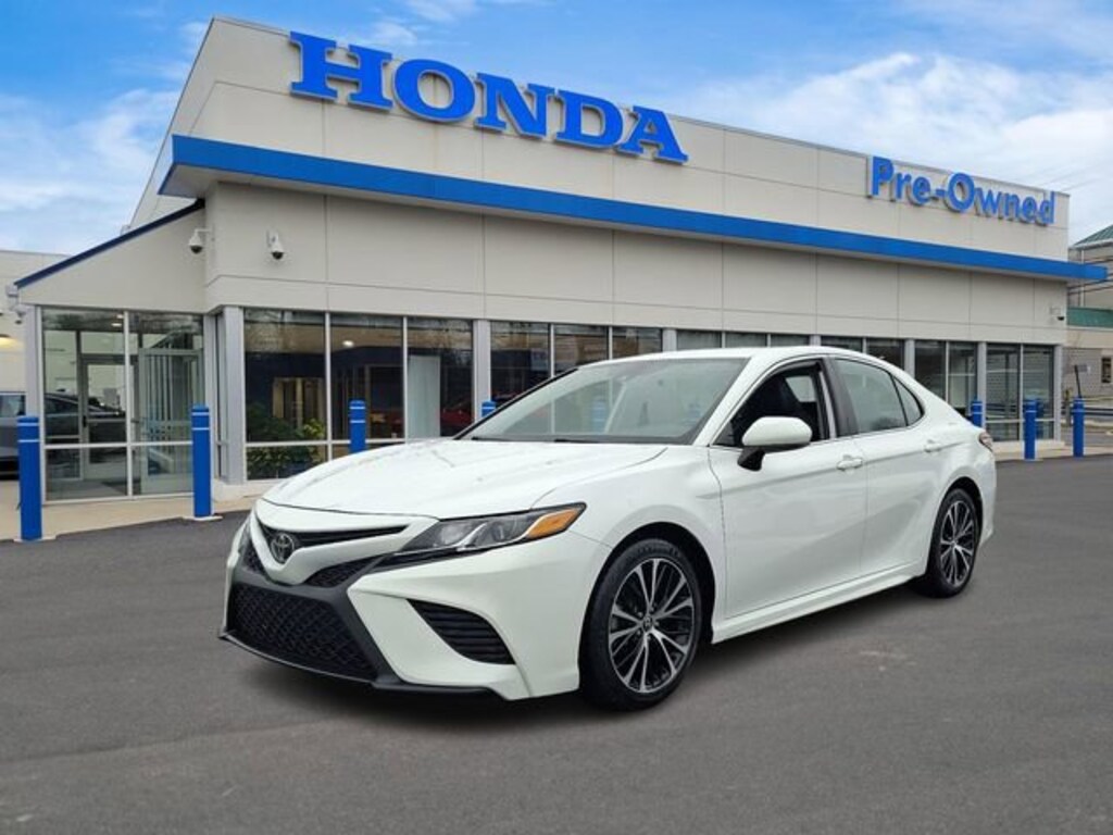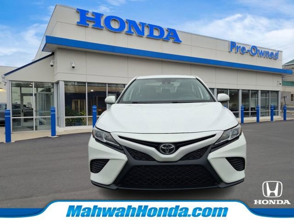 Honda of Mahwah is proud to present you with another True Market Priced Pre-Owned Vehicle. This 2020 Toyota Camry SE is loaded with the following Factory Options: 4D Sedan, 2.5L I4 DOHC 16V, 8-Speed Automatic, FWD, Wind Chill Pearl, Black Cloth, ABS brakes, Active Cruise Control, Alloy wheels, Electronic Stability Control, Illuminated entry, Low tire pressure warning, Remote keyless entry, and Traction control 4D Sedan, 2.5L I4 DOHC 16V, 8-Speed Automatic, FWD, Wind Chill Pearl, Black Cloth, ABS brakes, Active Cruise Control, Alloy wheels, Electronic Stability Control, Illuminated entry, Low tire pressure warning, Remote keyless entry, Traction control, 4-Wheel Disc Brakes, 6 Speakers, Air Conditioning, AM/FM radio: SiriusXM, Apple CarPlay/Android Auto, Auto High-beam Headlights, Automatic temperature control, Brake assist, Bumpers: body-color, Delay-off headlights, Driver door bin, Driver vanity mirror, Dual front impact airbags, Dual front side impact airbags, Emergency communication system: Safety Connect with 1-year trial, Exterior Parking Camera Rear, Fabric Seat Trim w/SofTex, Four wheel independent suspension, Front anti-roll bar, Front Bucket Seats, Front Center Armrest, Front reading lights, Front Sport Bucket Seats, Fully automatic headlights, Knee airbag, Leather Shift Knob, Occupant sensing airbag, Outside temperature display, Overhead airbag, Overhead console, Panic alarm, Passenger door bin, Passenger vanity mirror, Power door mirrors, Power driver seat, Power steering, Power windows, Radio data system, Radio: AM/FM Audio System, Rear anti-roll bar, Rear reading lights, Rear seat center armrest, Rear side impact airbag, Rear window defroster, Security system, Speed control, Speed-sensing steering, Split folding rear seat, Spoiler, Sport steering wheel, Steering wheel mounted audio controls, Tachometer, Telescoping steering wheel, Tilt steering wheel, Trip computer, Variably intermittent wipers, and Wheels: 8.0J x 18" Black Machined-Finish Alloy!!