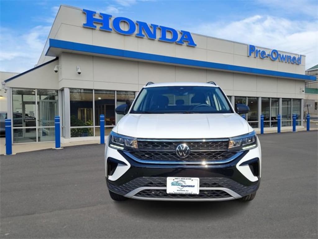 Honda of Mahwah is proud to present you with another True Market Priced Pre-Owned Vehicle. This 2024 Volkswagen Taos 1.5T S is loaded with the following Factory Options: 4-Wheel Disc Brakes, 5.20 Axle Ratio, 6 Speakers, ABS brakes, Active Blind Spot Monitor, Air Conditioning, Alloy wheels, AM/FM radio, Auto High-beam Headlights, Brake assist, Bumpers: body-color, Cloth Seating Surfaces, Compass, Delay-off headlights, Driver door bin, Driver vanity mirror, Dual front impact airbags, Dual front side impact airbags, Electronic Stability Control, Emergency communication system: VW Car-Net Safe & Secure 5-year, Exterior Parking Camera Rear, First Aid Kit, Four wheel independent suspension, Front anti-roll bar, Front Bucket Seats, Front Center Armrest, Front reading lights, Front Strut Rear Multi-Link Suspension, Fully automatic headlights, Heated door mirrors, Heated Front Bucket Seats, Heated front seats, Heated steering wheel, Illuminated entry, Leather Shift Knob, Low tire pressure warning, Occupant sensing airbag, Outside temperature display, Overhead airbag, Overhead console, Panic alarm, Passenger door bin, Passenger vanity mirror, Power door mirrors, Power steering, Power windows, Radio data system, Radio: Composition Color AM/FM, Rain sensing wipers, Rear anti-roll bar, Rear seat center armrest, Rear window defroster, Rear window wiper, Remote keyless entry, Rubber Mats Kit (SNM), Speed control, Speed-sensing steering, Split folding rear seat, Spoiler, Steering wheel mounted audio controls, Tachometer, Telescoping steering wheel, Tilt steering wheel, Traction control, Trip computer, Variably intermittent wipers, VW Care, and Wheels: 18" 2-Tone Machined Alloy!!